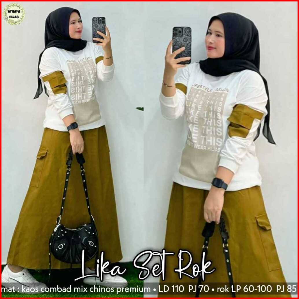 Lika Set By Athaya Setelan Wanita Atasan Mix Rok Bahan Combed Mix Chinos Best Seller