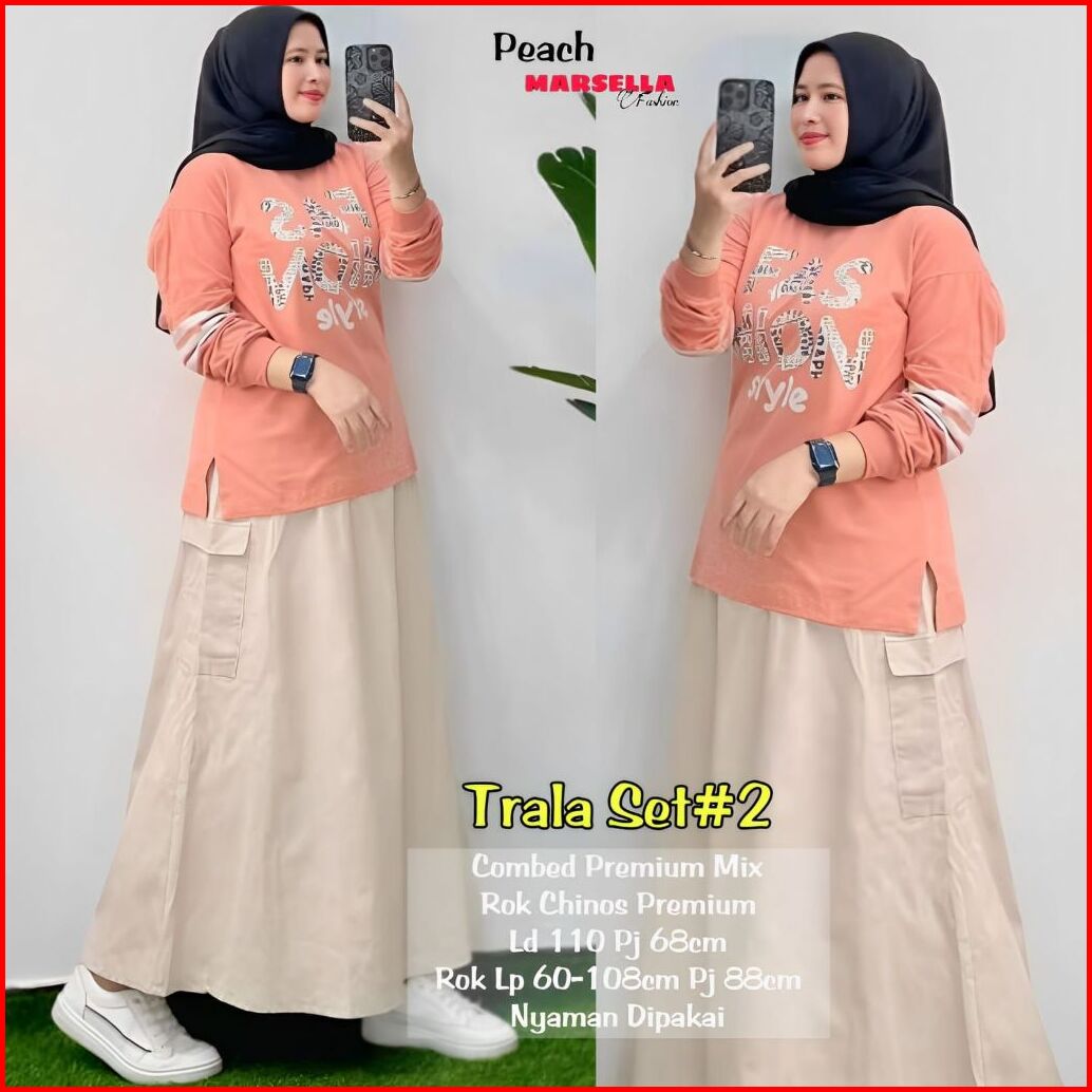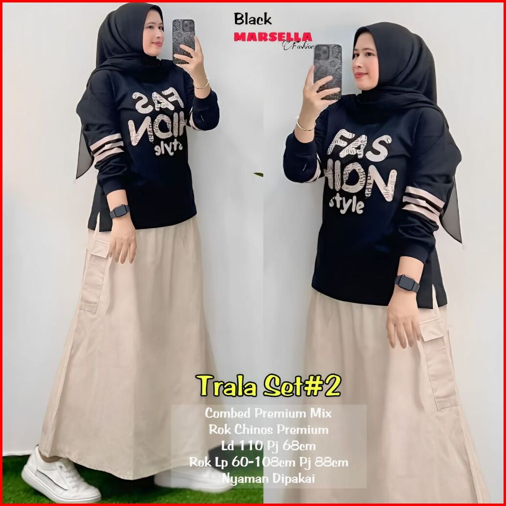 Trala Set 2 By Marsella Setelan Wanita Atasan Mix Rok Bahan Combed Mix Chinos Best Seller