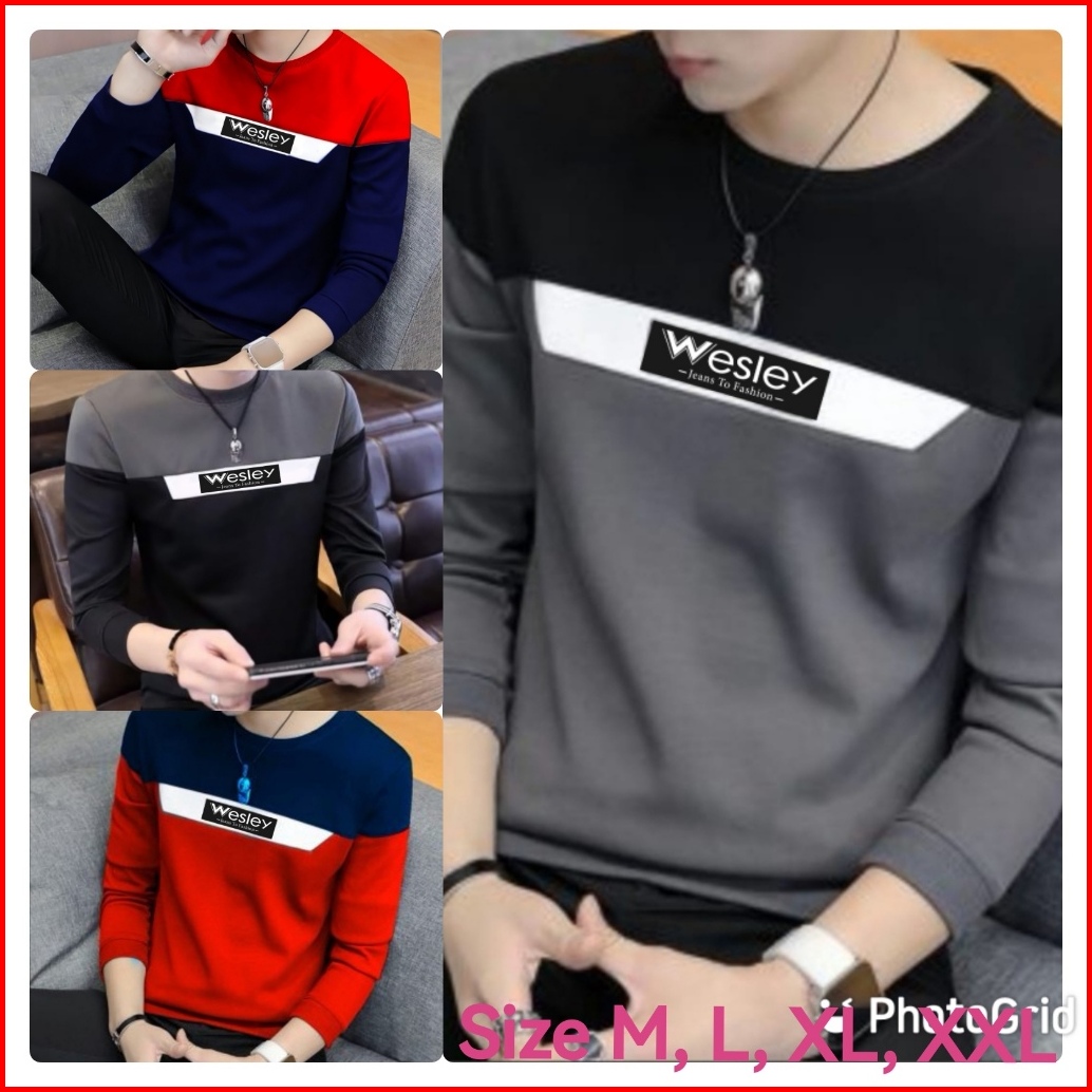 Promo Sweater Keren Kaos Pria Trendy Crewneck Unisex Elegan Sweatshirt Kasual Sweter Cowok Wesley