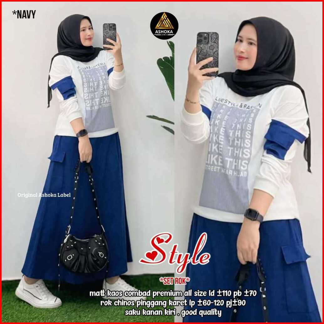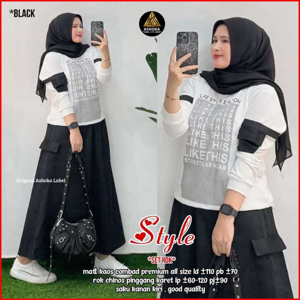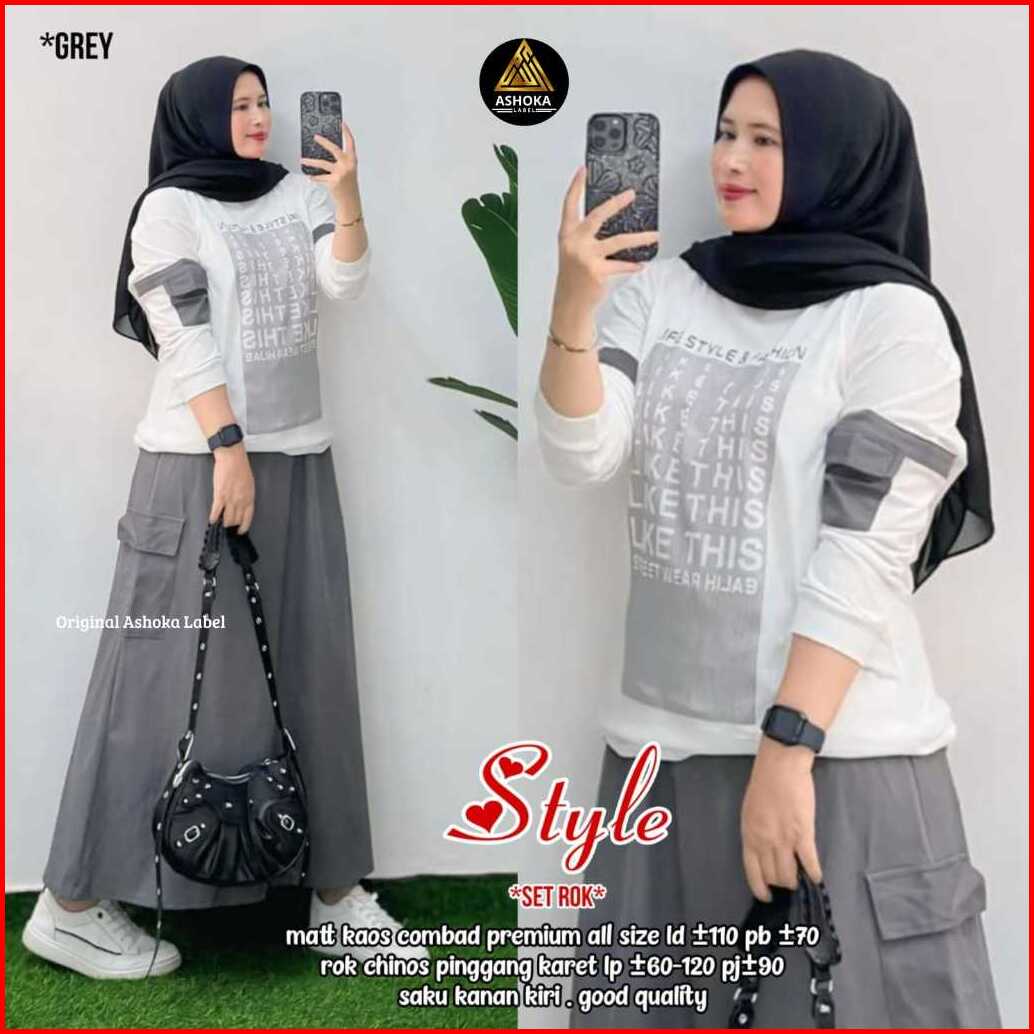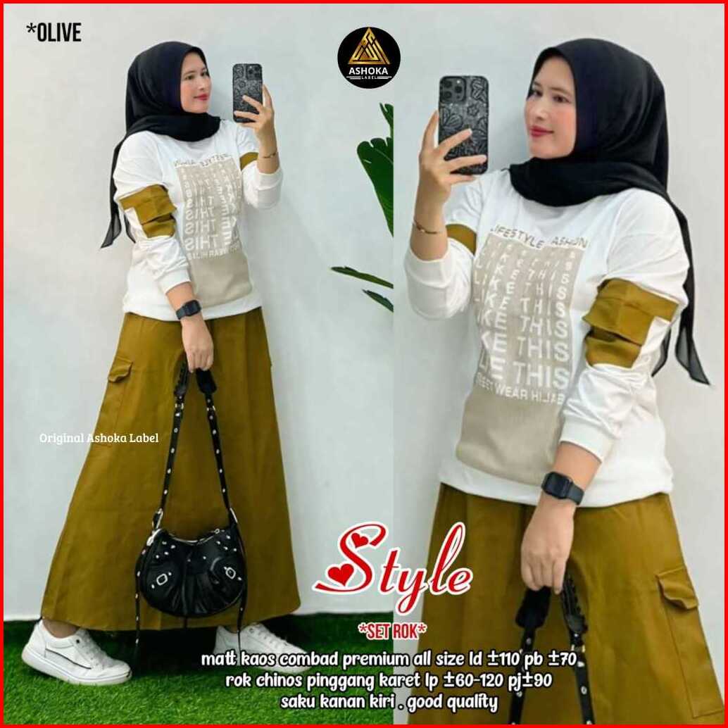 Style Set By Ahsoka Setelan Wanita Atasan Mix Rok Bahan Kaso Combad Mix Chinos Premium Best Seller