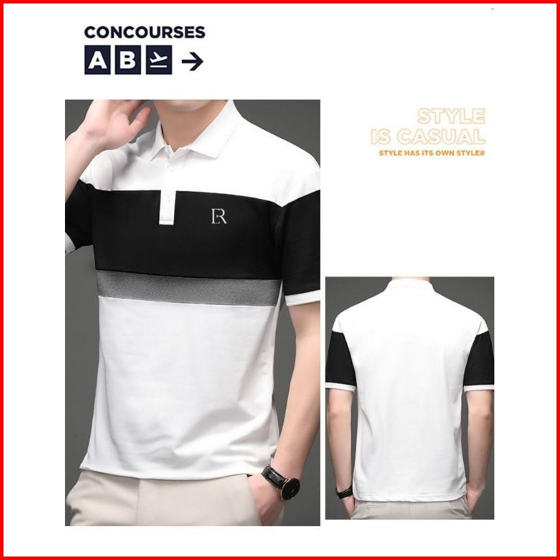 Erwain Ll White Kaos Polo Shirt Kombinasi Pria Bisnis Kasual Distro Bandung
