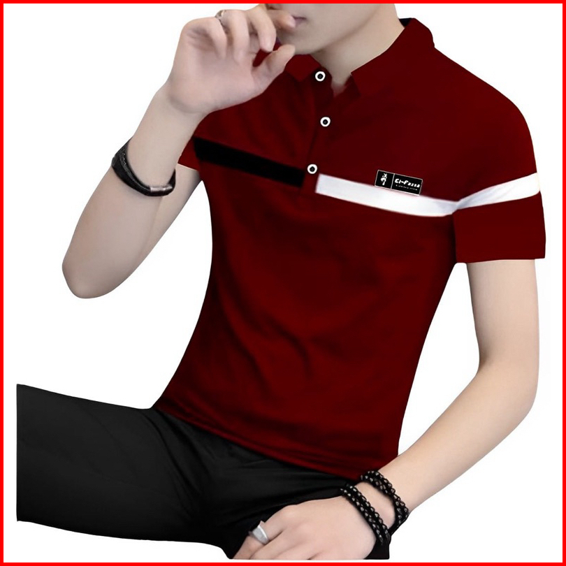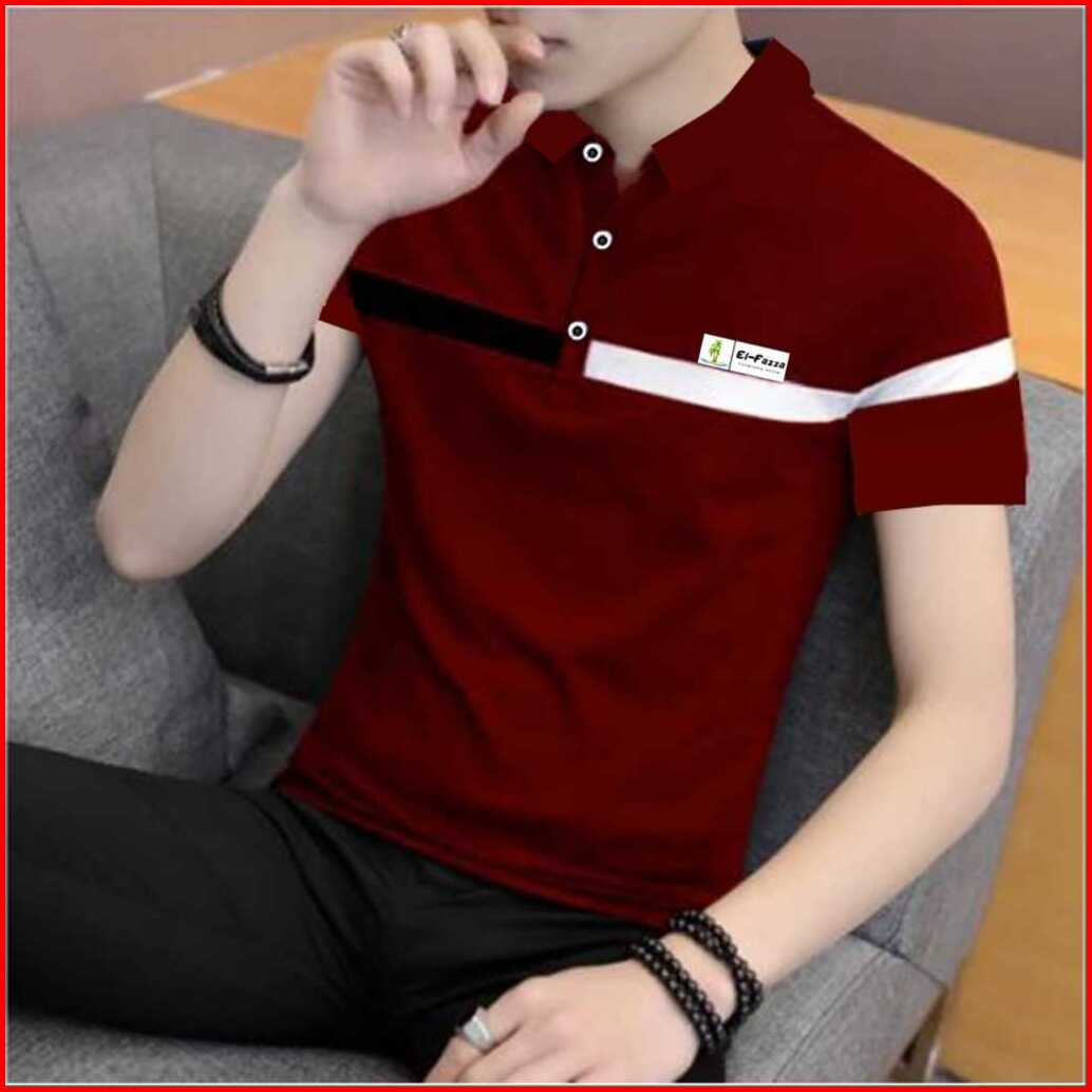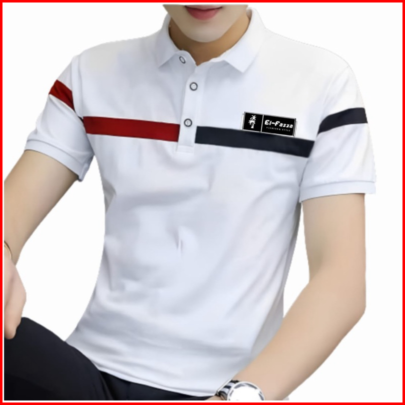 Kaos Kerah Pria Lengan Pendek Motif Kombinasi Kekinian Baju Pollo Pria Terbaru Style Korea Elfazza