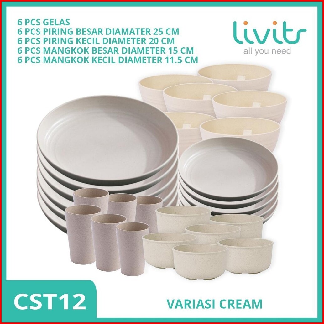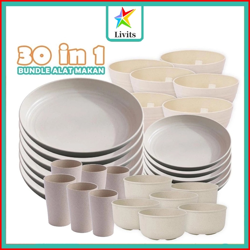 Set 30 Pcs Alat Makan 6 Pcs Piring Besar 6 Pcs Piring Kecil 6 Pcs Cangkir Minum 6 Pcs Mangkok Besar 6 Pcs Mangkok Kecil
