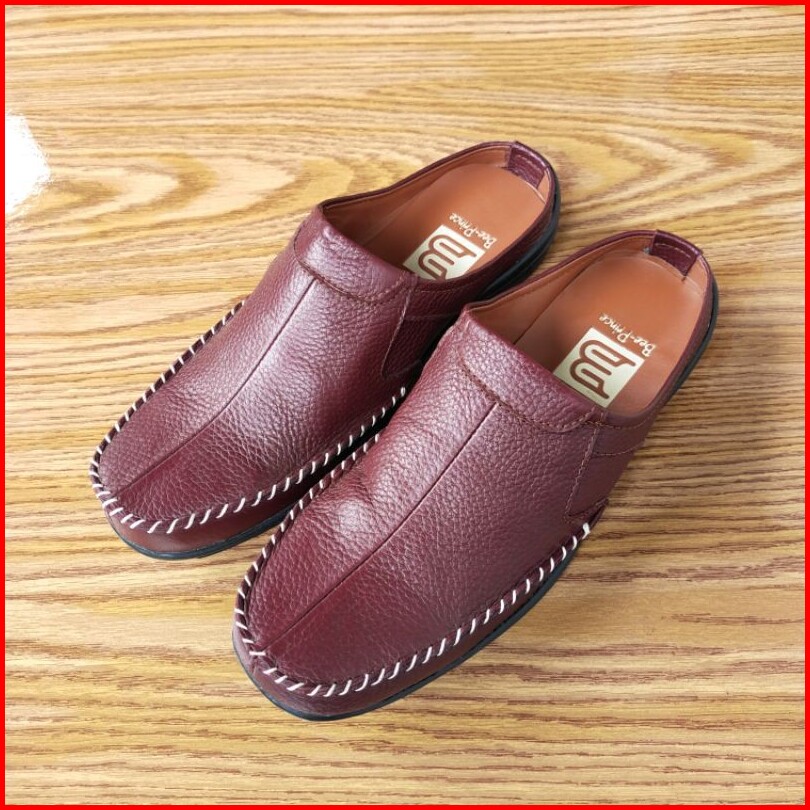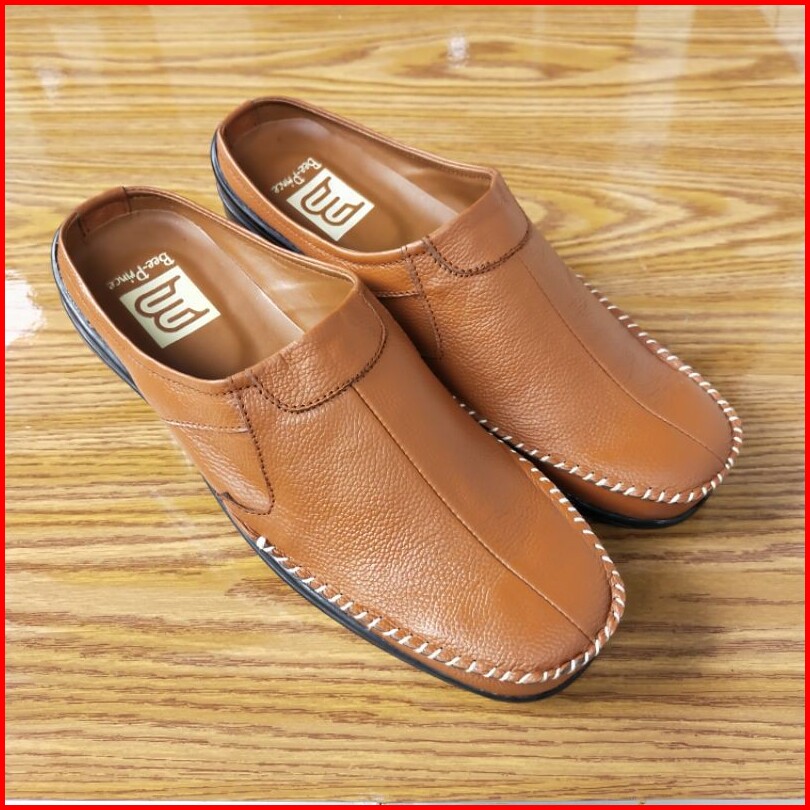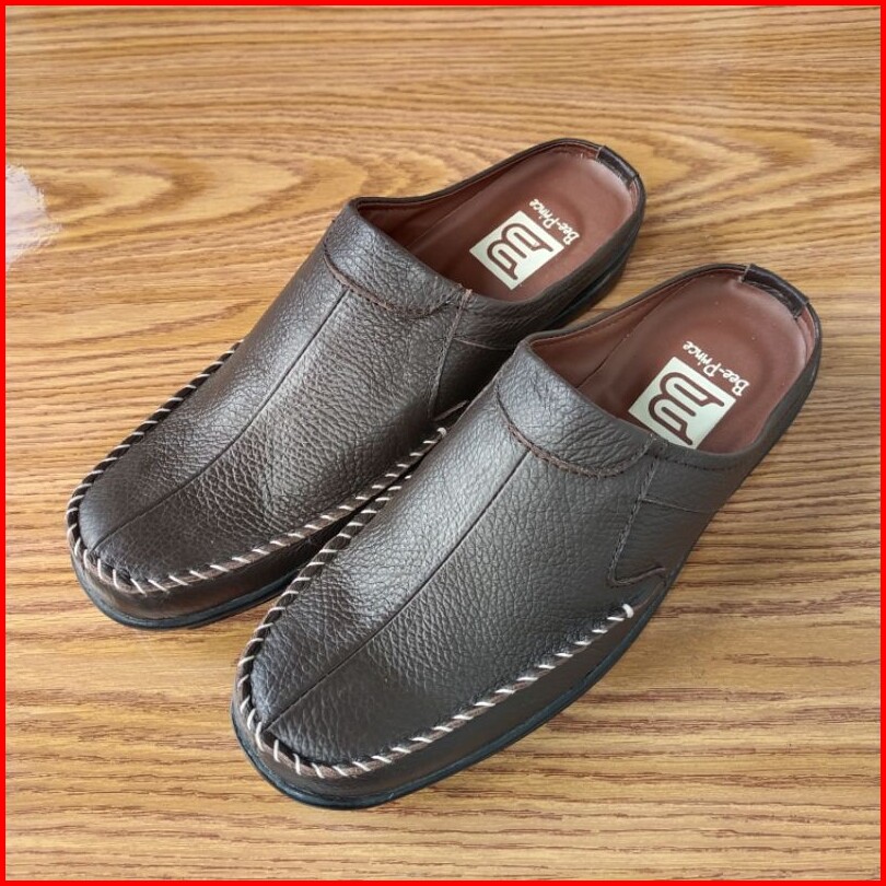 Bee Prince Sepatu Selop Pria Kulit Asli Sandal Bustong Laki Laki Sendal Tutong Casual
