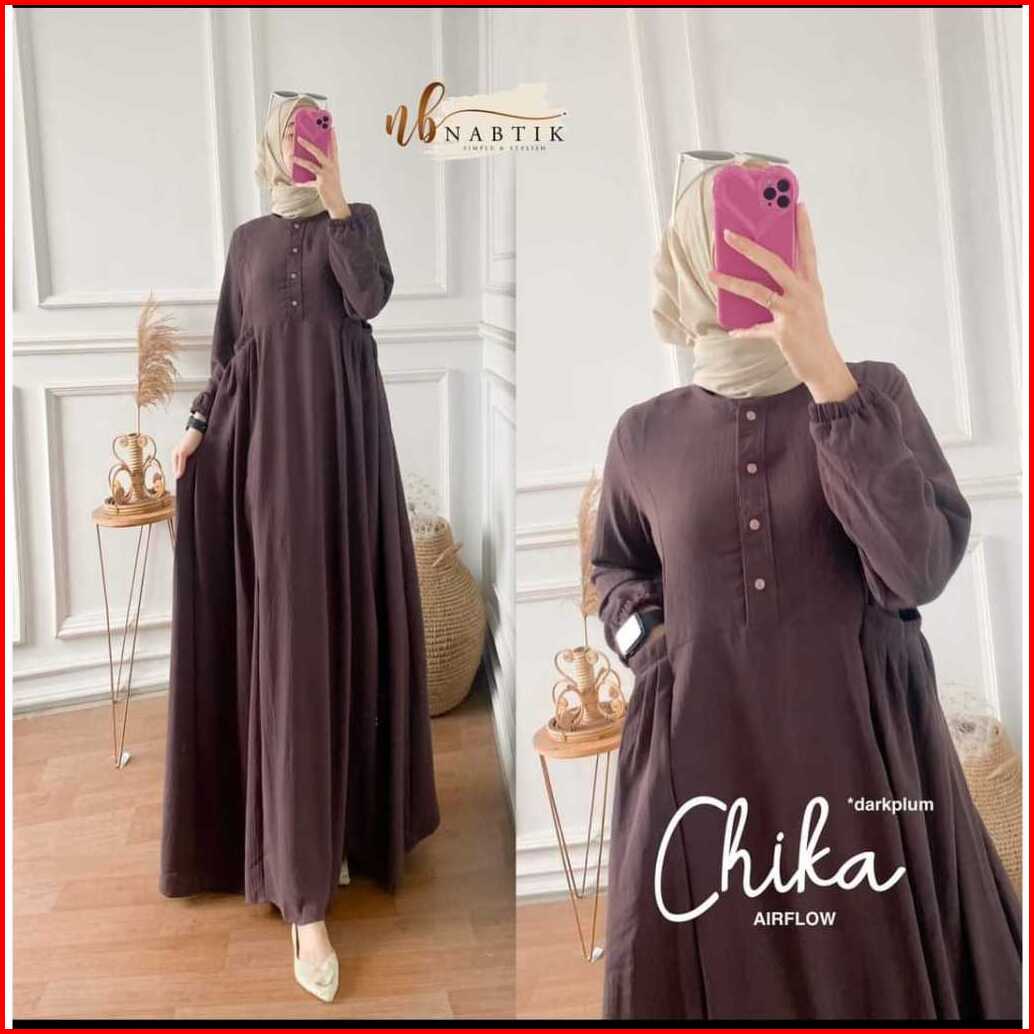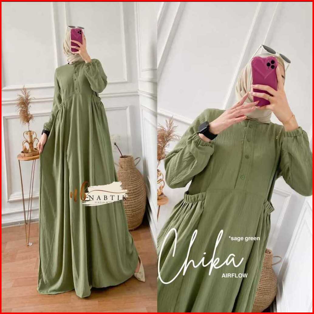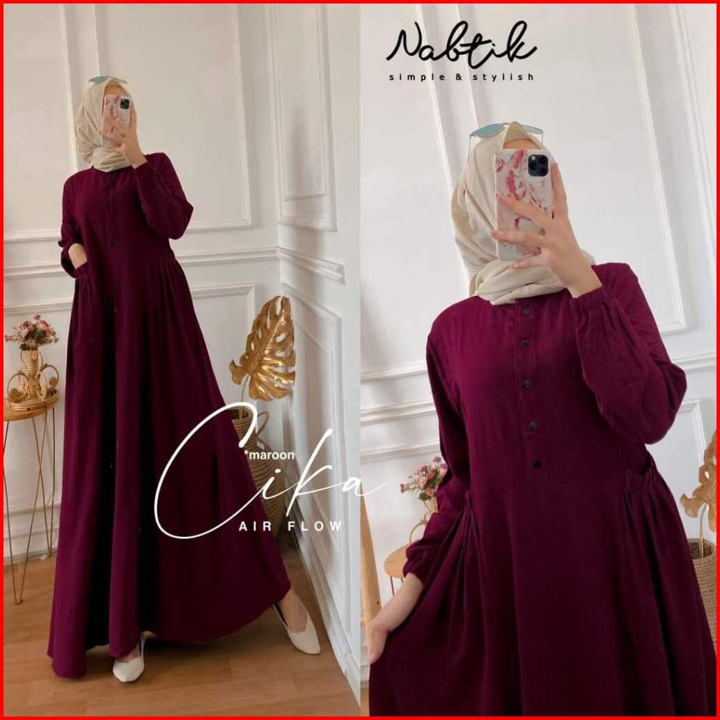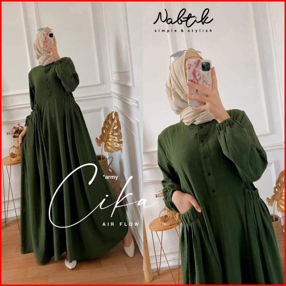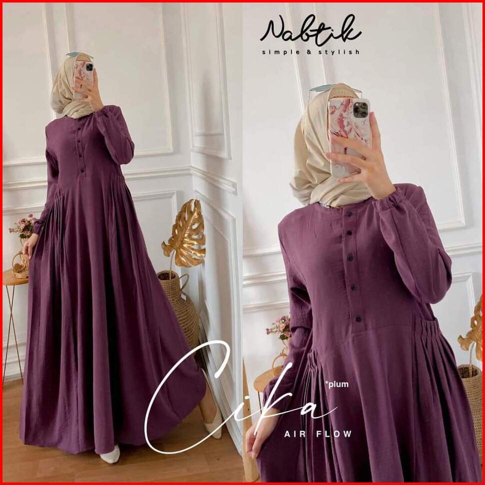 Gamis Cika Jumbo Ld 120cm Bahan Crinkle Airflow Premium Busui Kancing Gamis Mewah Elegan