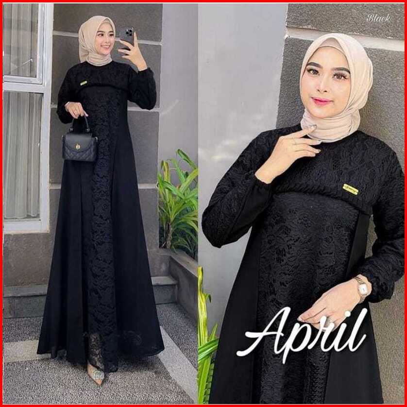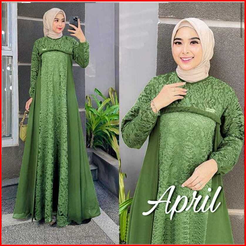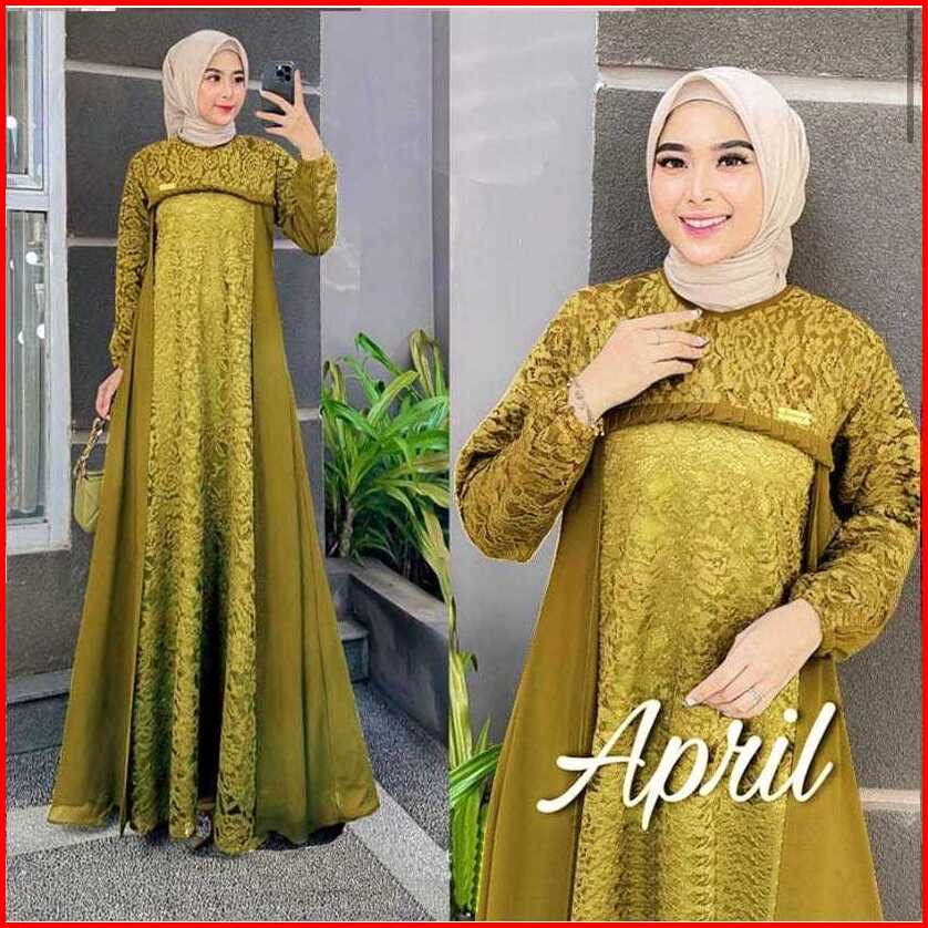 Gamis Terbaru Dress Terbaru April Dress Bahan Cerutty Mix Brukat Gamis Kondangan