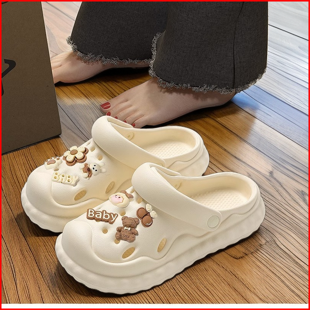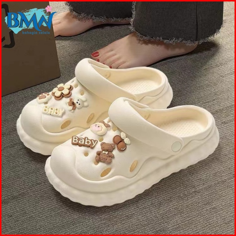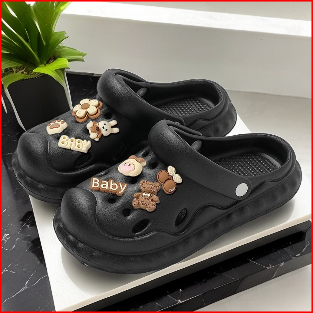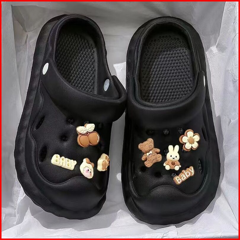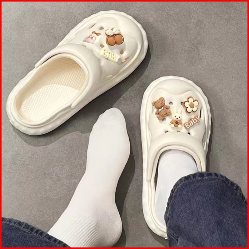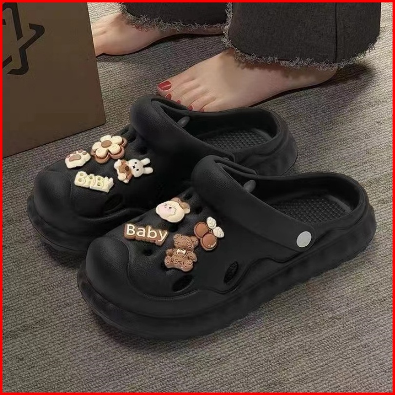 Sandal Wanita Sandal Bolong Wedges Import Import Aksesori Dekorasi Kartun 2024 Korea