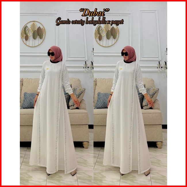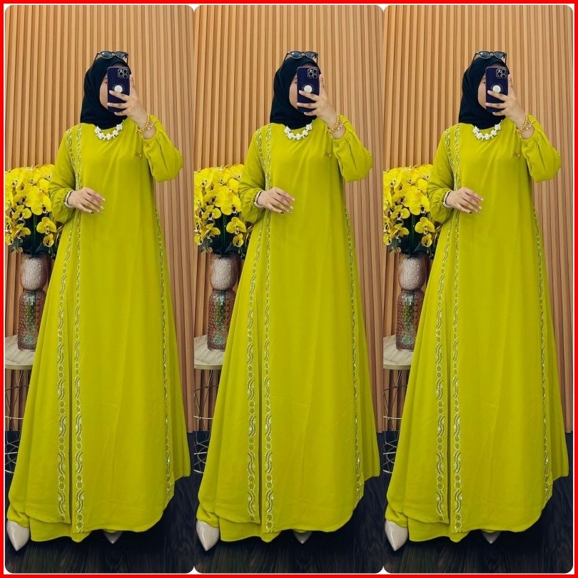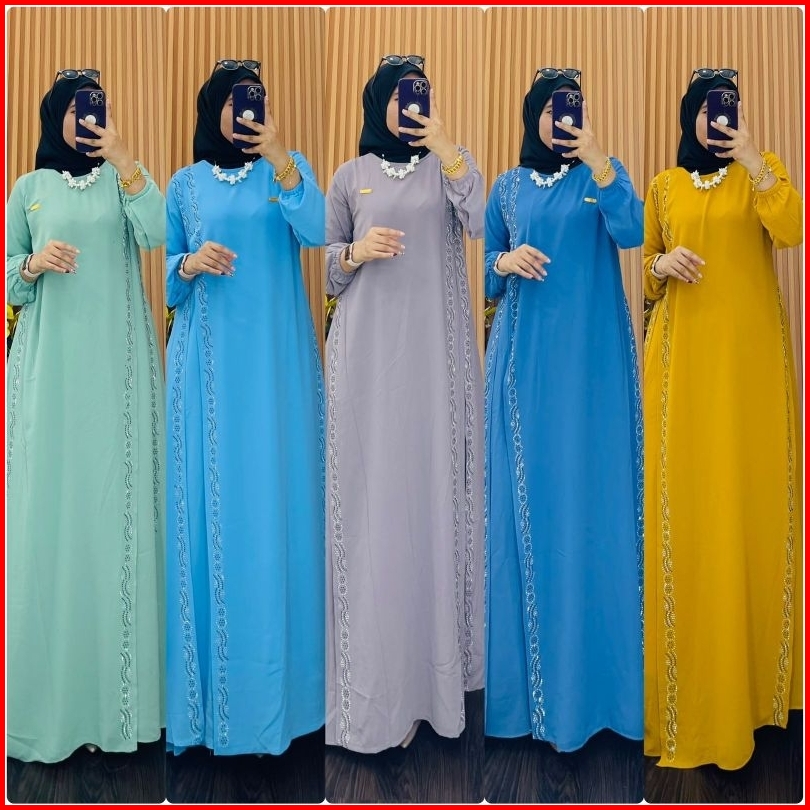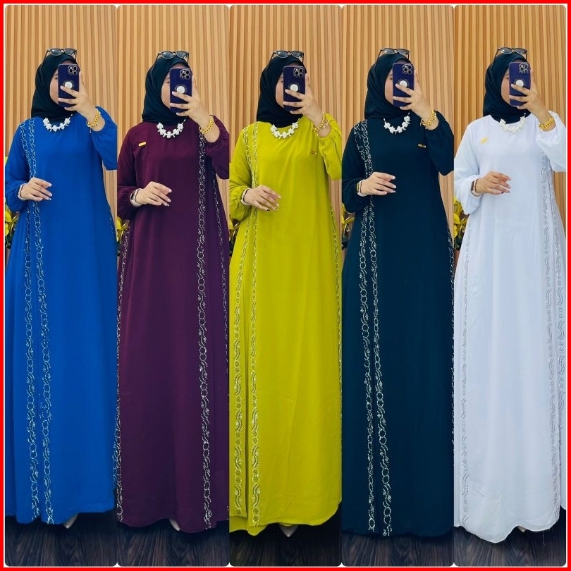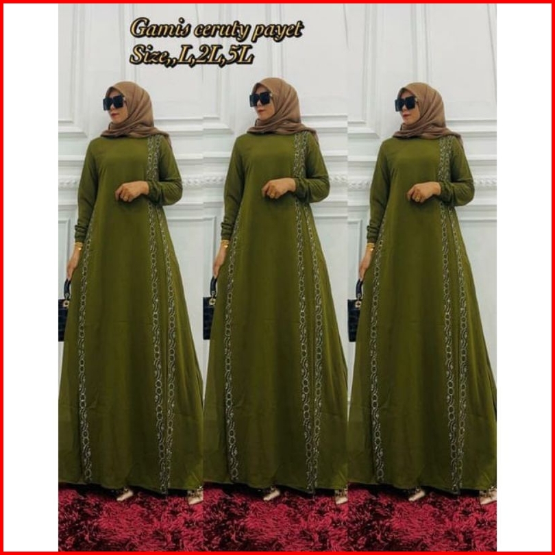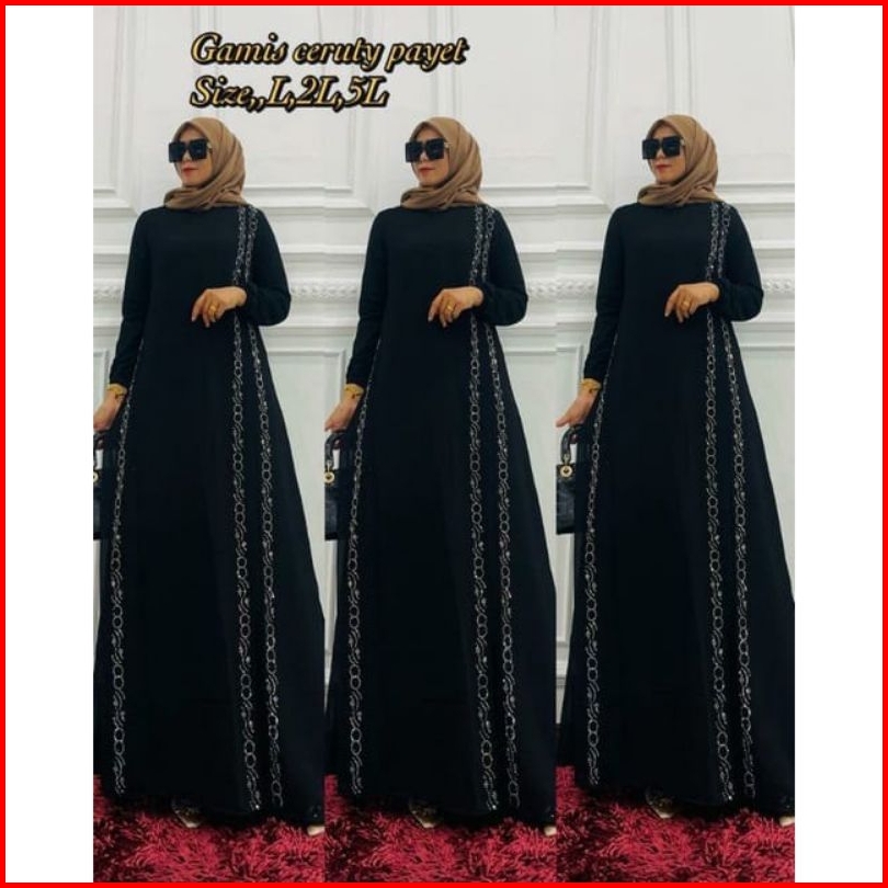 Gamis Wanita Edisi Terbaru Seragaman Standar Jumbo Ceruty Premium Mix Payet Swarovski Samping Kanan Kiri Cantik Elegan T