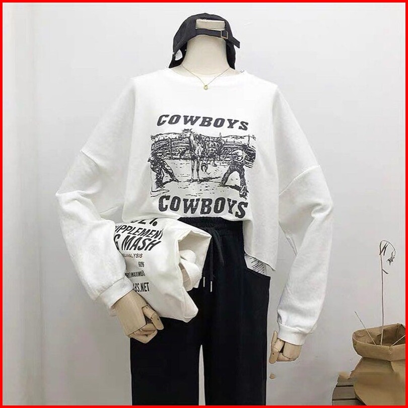 Cowboys Sweater Oversize - Crewneck Sweater Wanita - Pakaian Wanita Terlaris