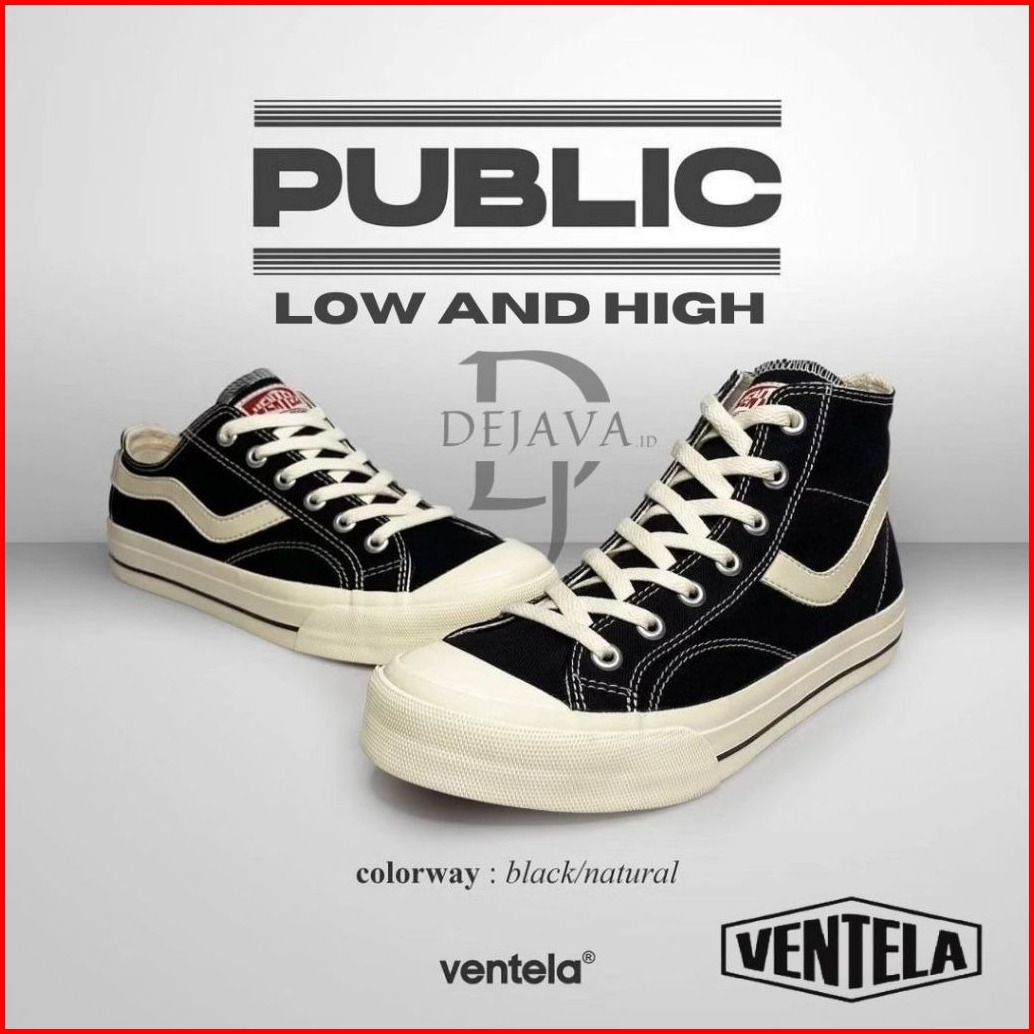 Free Box Kaoskaki Sepatu Sneakers Ventela Public Low Hig Black Natural Pria Wanita Original 100 Sepatu Sekolah Hitam Put