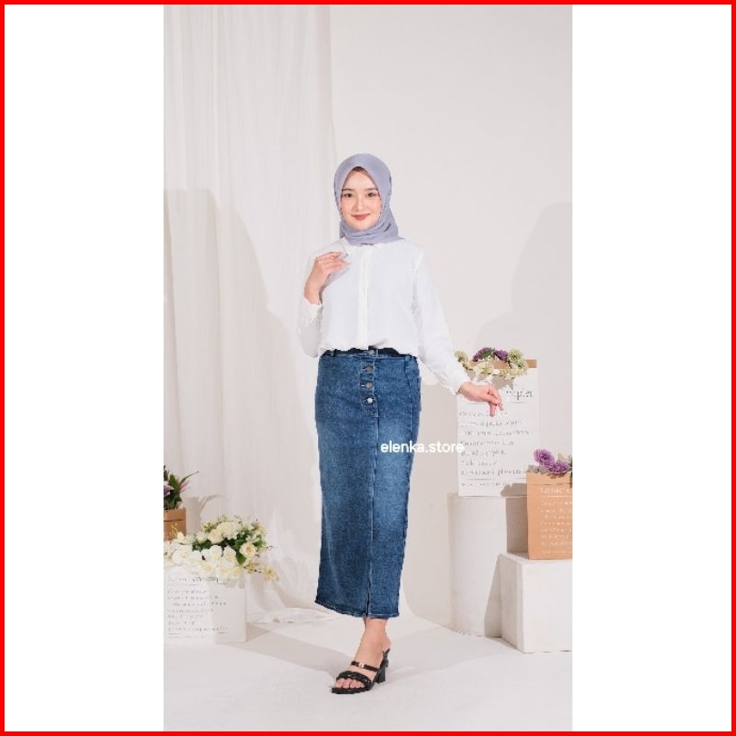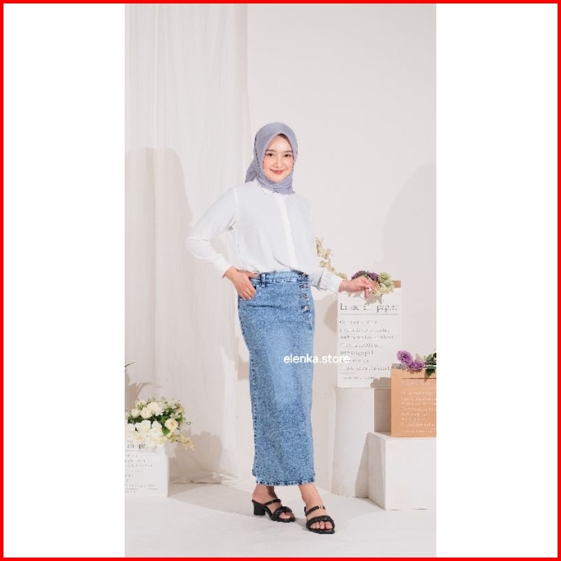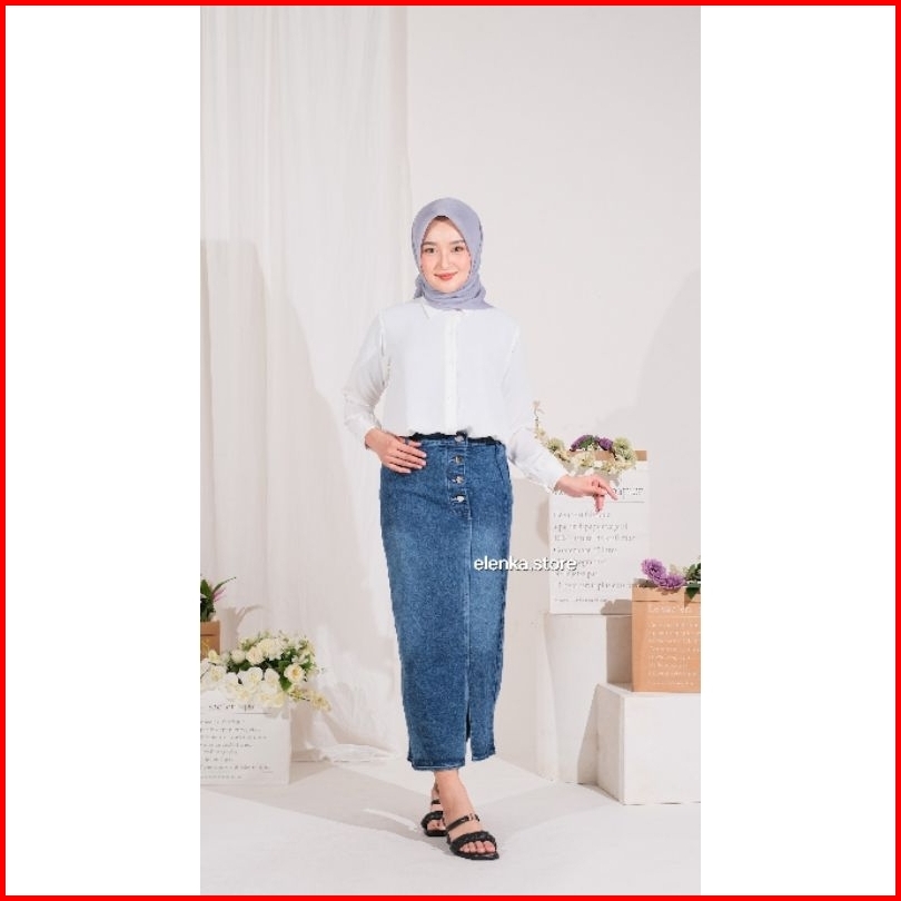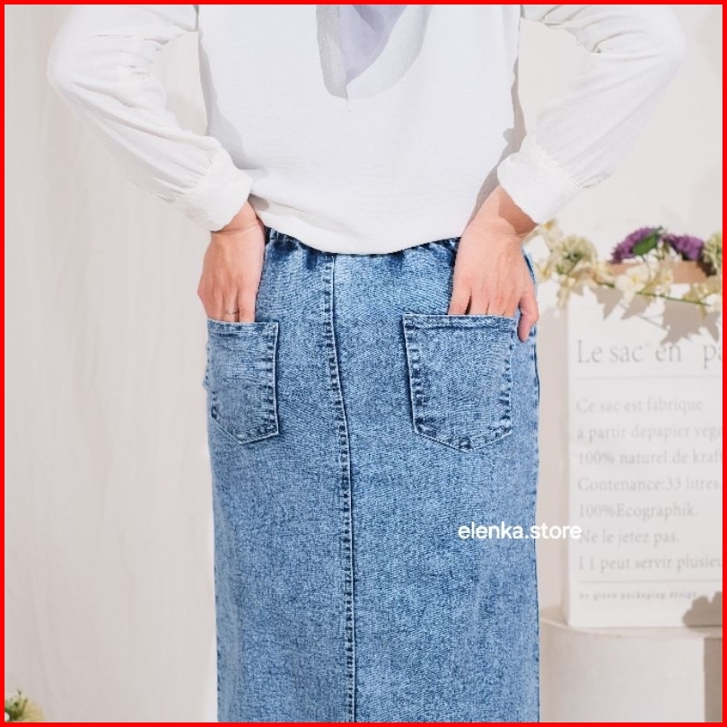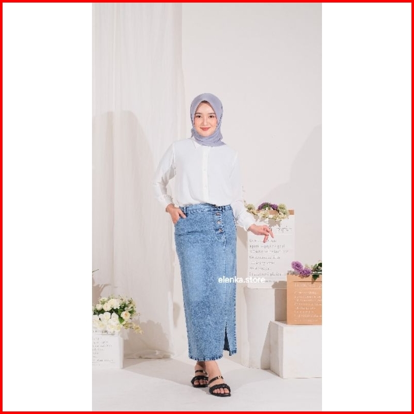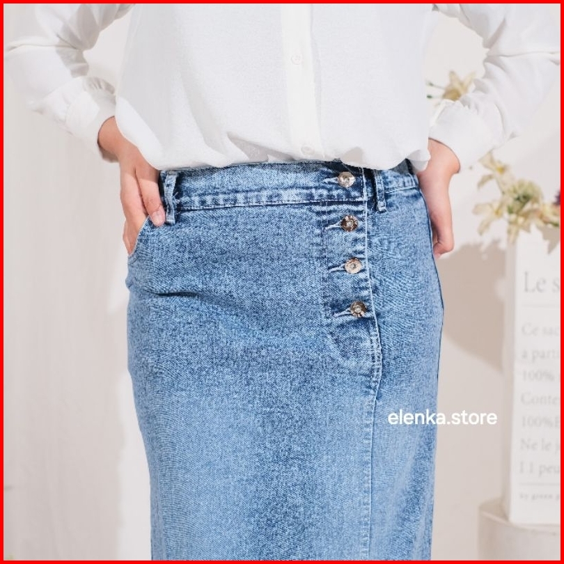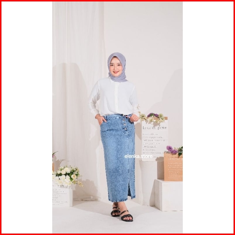 Rok Jeans Belah Samping Wanita Panjang Terbaru