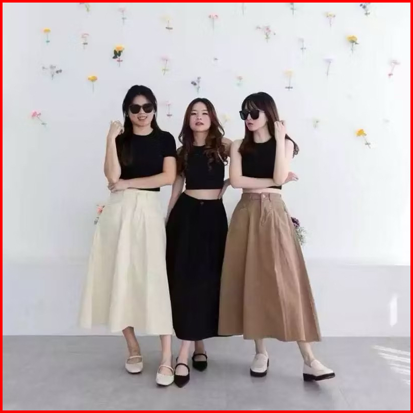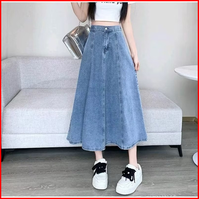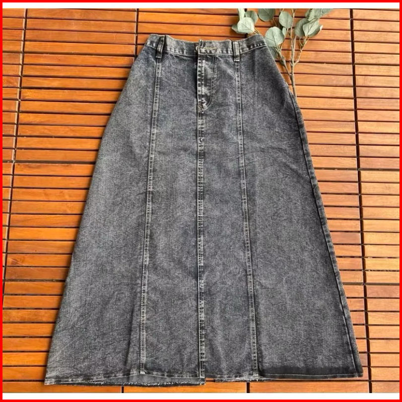 Jisso Rok Jeans Mayung Premium Wanita A-line 7 8 Model Payung Pinggang Karet -rok Wanita Hihgwaist Skrit Kekinian