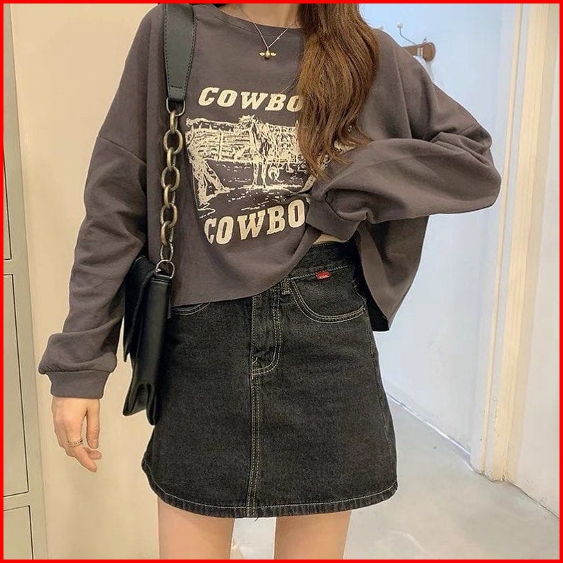 Cowboys Sweater Wanita Oversize - Crewneck Oversize Bahan Fleece