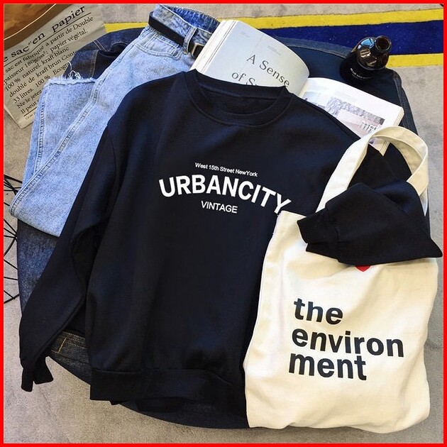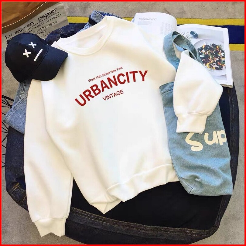 Tf - Urban City Sweatshirt Retro Style Wanita Dan Pria Reguler Size Vintage Sweater Remaja