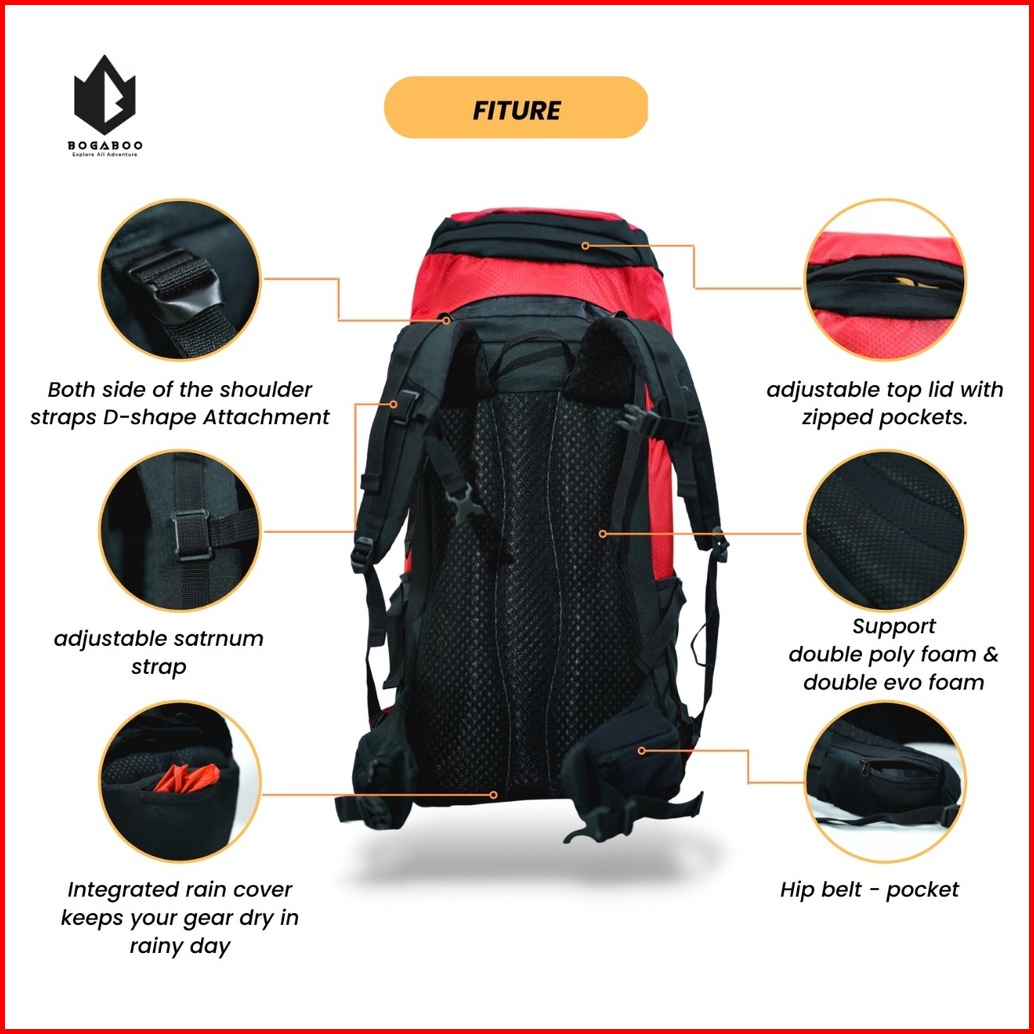 Tas Carrier Bogaboo Seri Mahven Pro 45 Liter 10 L - Tas Keril Camping Outdoor - Tas Ransel Gunung - Tas Travelling Hikin