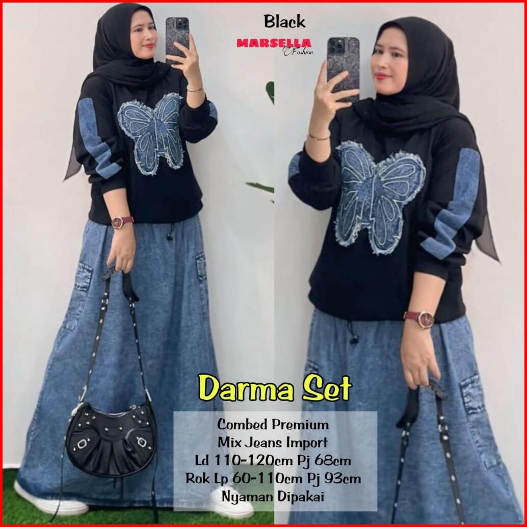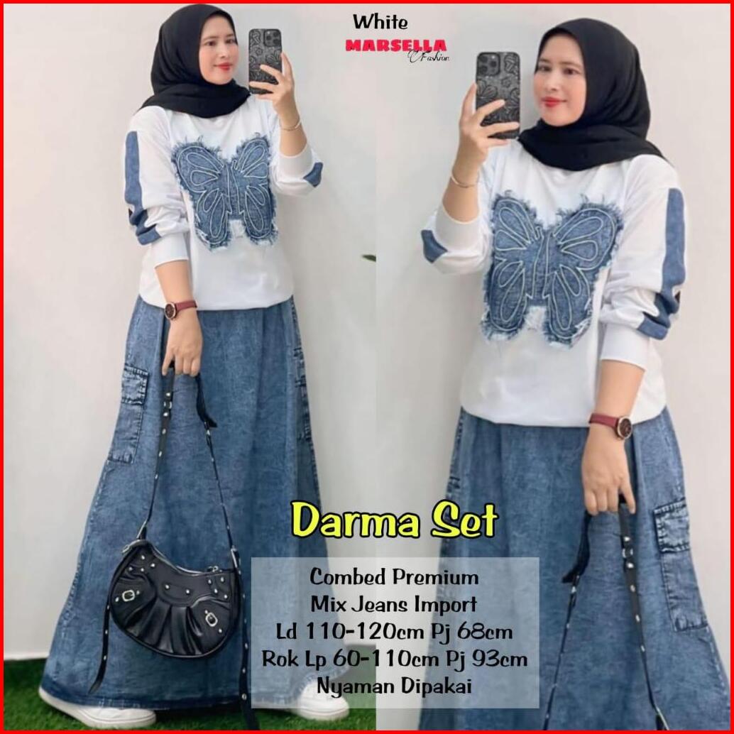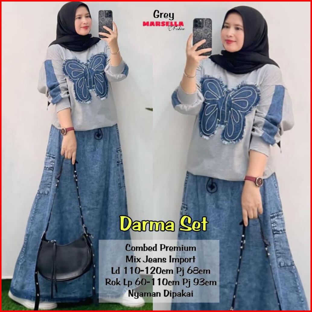 Darma Set By Marsella Setelan Wanita Atasan Mix Rok Bahan Combed Mix Jeans Best Seller