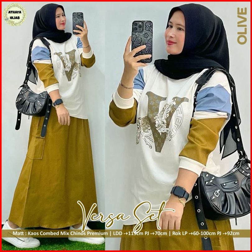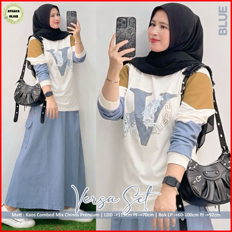 Setelan Wanita Setelan Rok Katun Viral Versa One Set Rok Kekinian