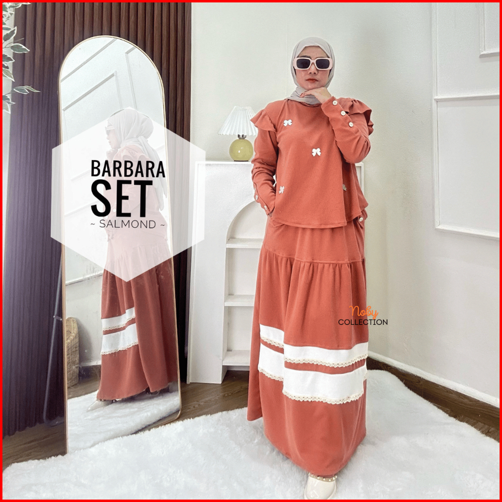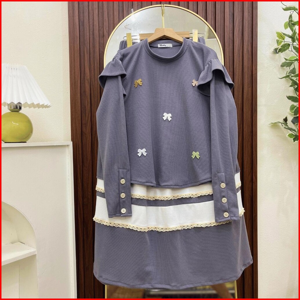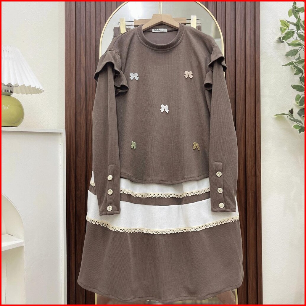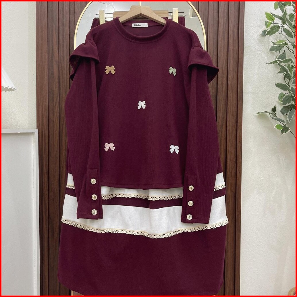 Setelan Rok Barbara Knit Wanita Dewasa One Set Fashion Terbaru Casual Dengan Pola Polos Dan Lengan Panjang - Kancing Nya