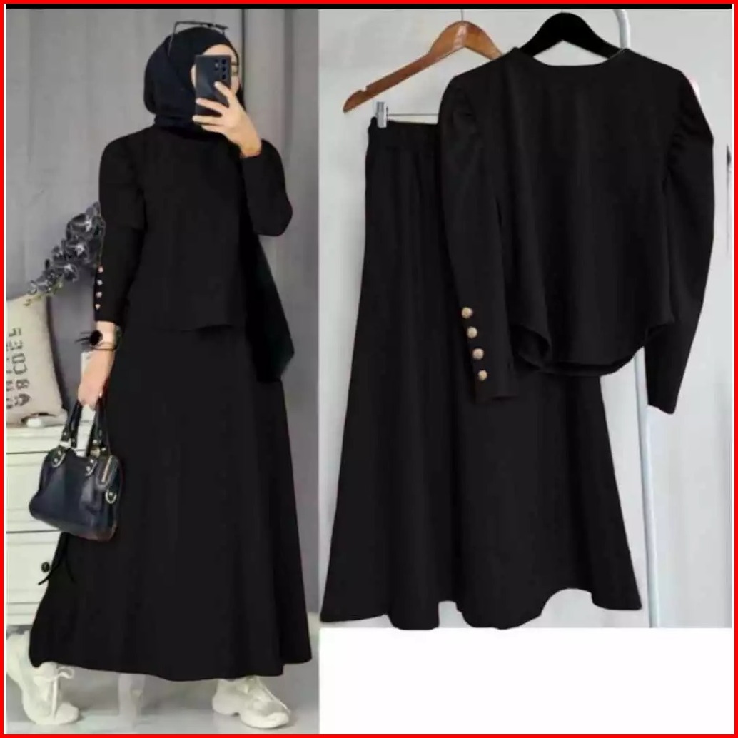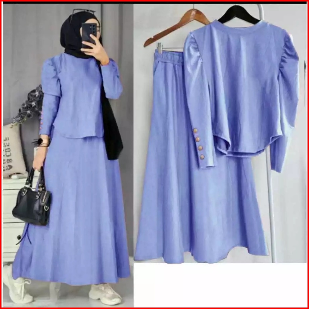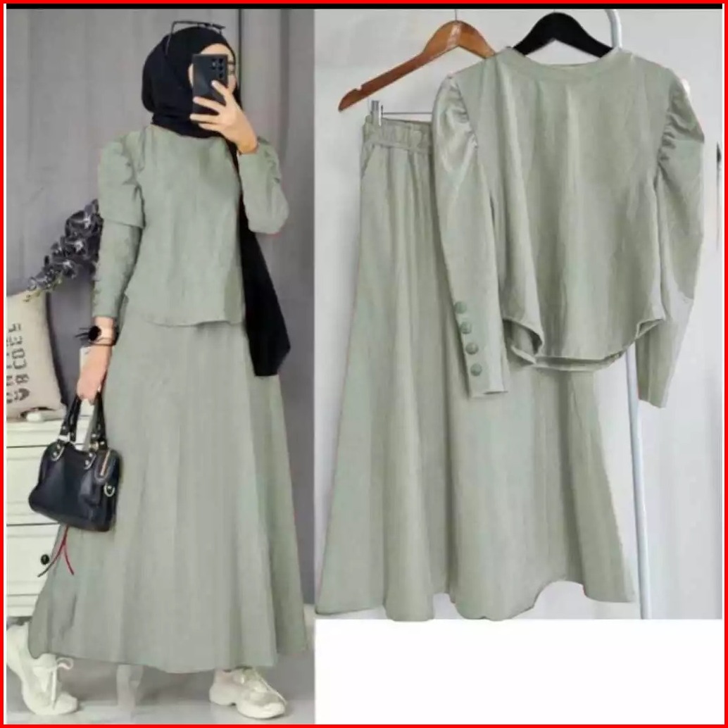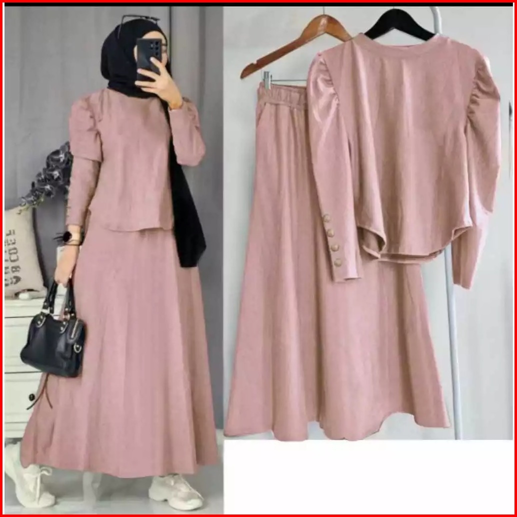 Setelan Rok Terbaru Mitsuka Tangan Balon Knit Premium Setelan Rok Wanita Rib Knit One Set Rok Wanita Lengan Balon Oneset