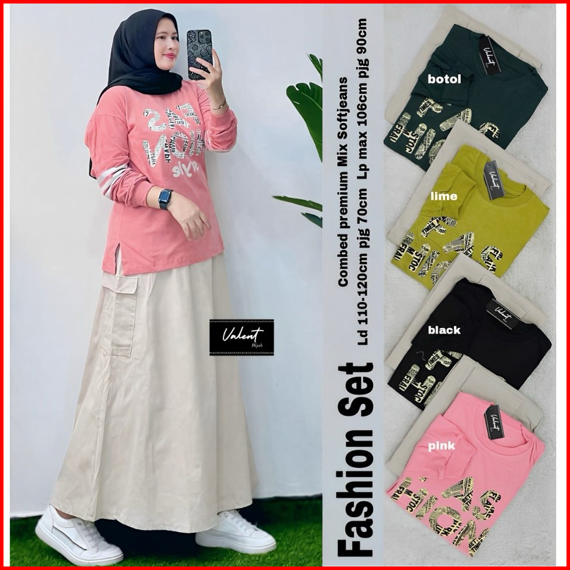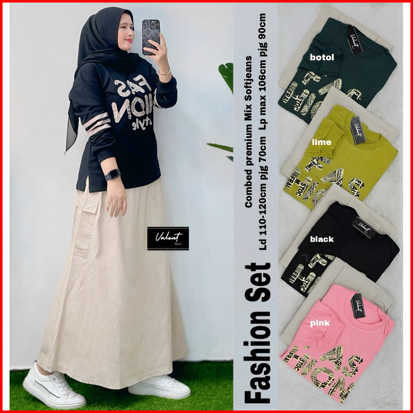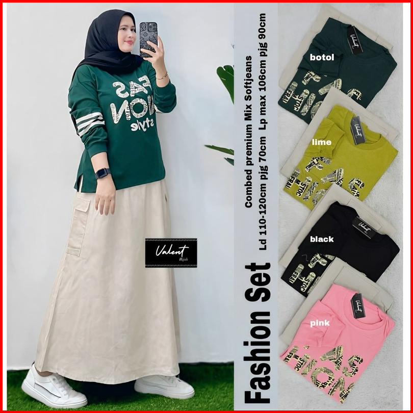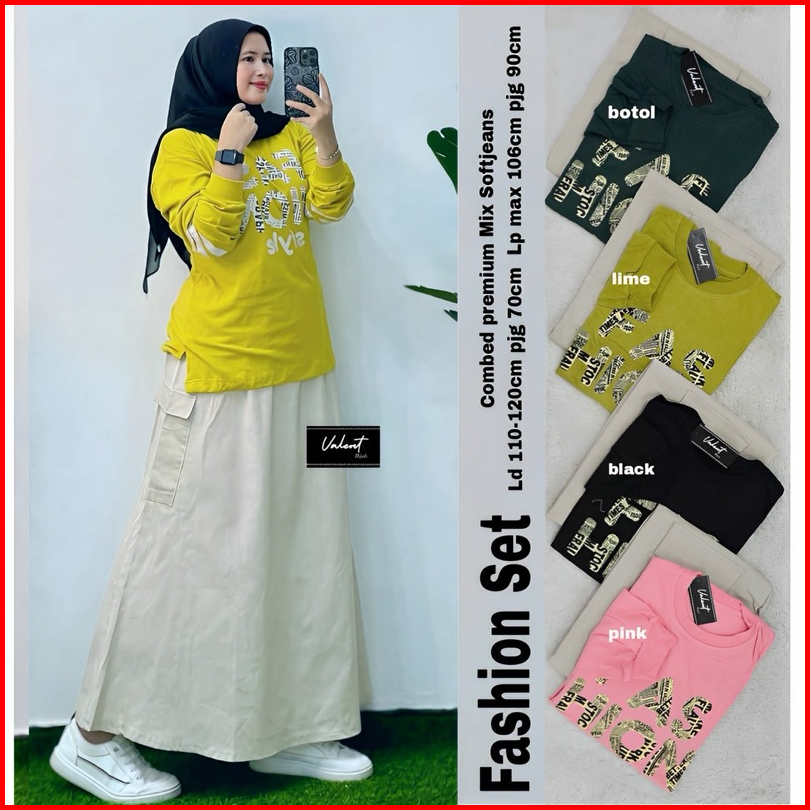 Setelan Wanita Setelan Rok Katun Viral Fashion One Set Rok Kekinian