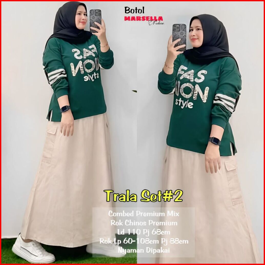 Trala Set 2 Marsella Setelan Wanita Atasan Mix Rok Bahan Combad Mix Chinos Premium Hq