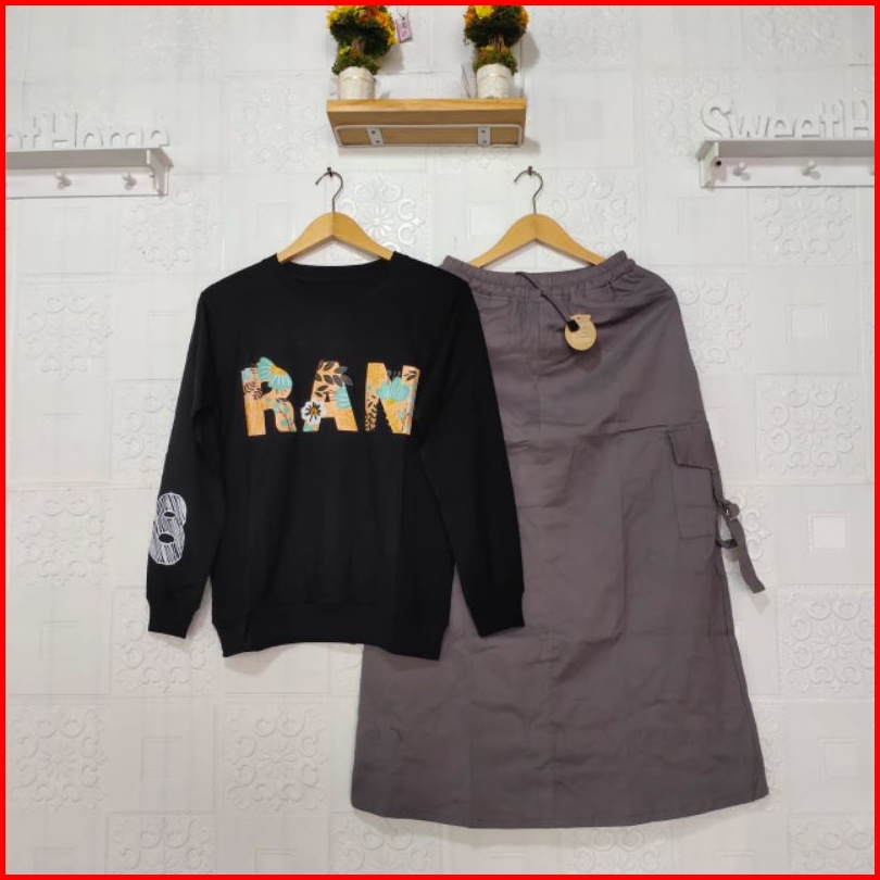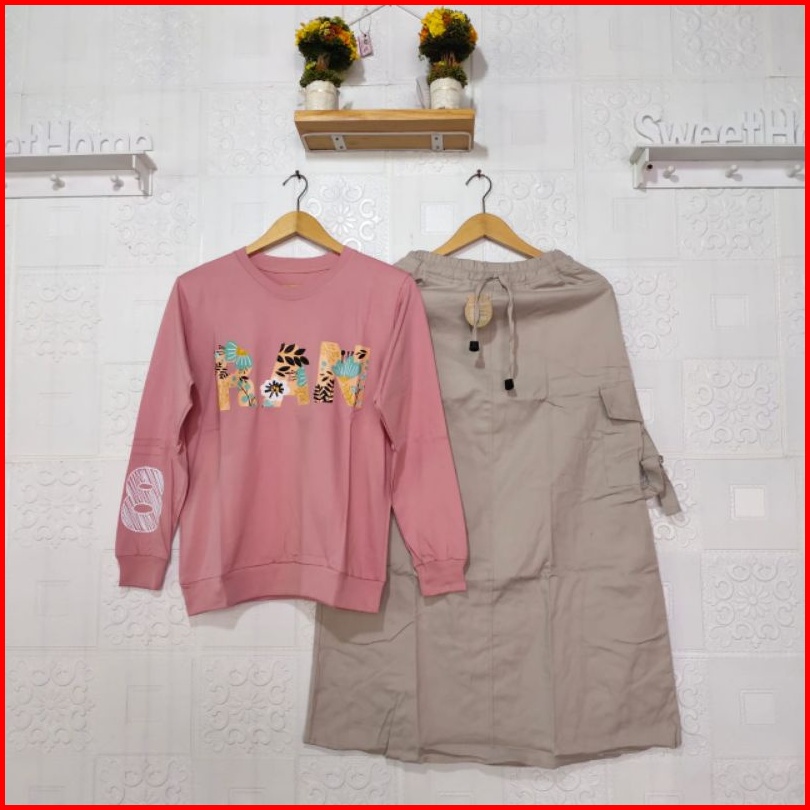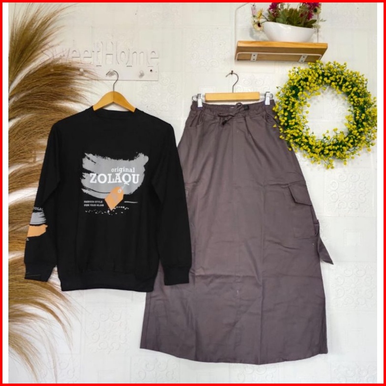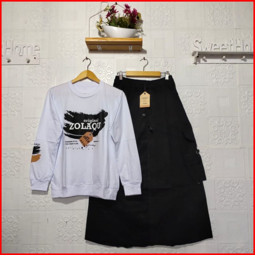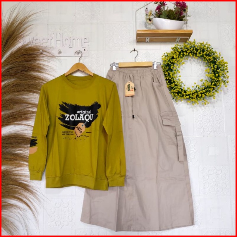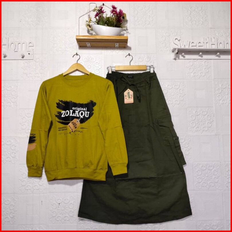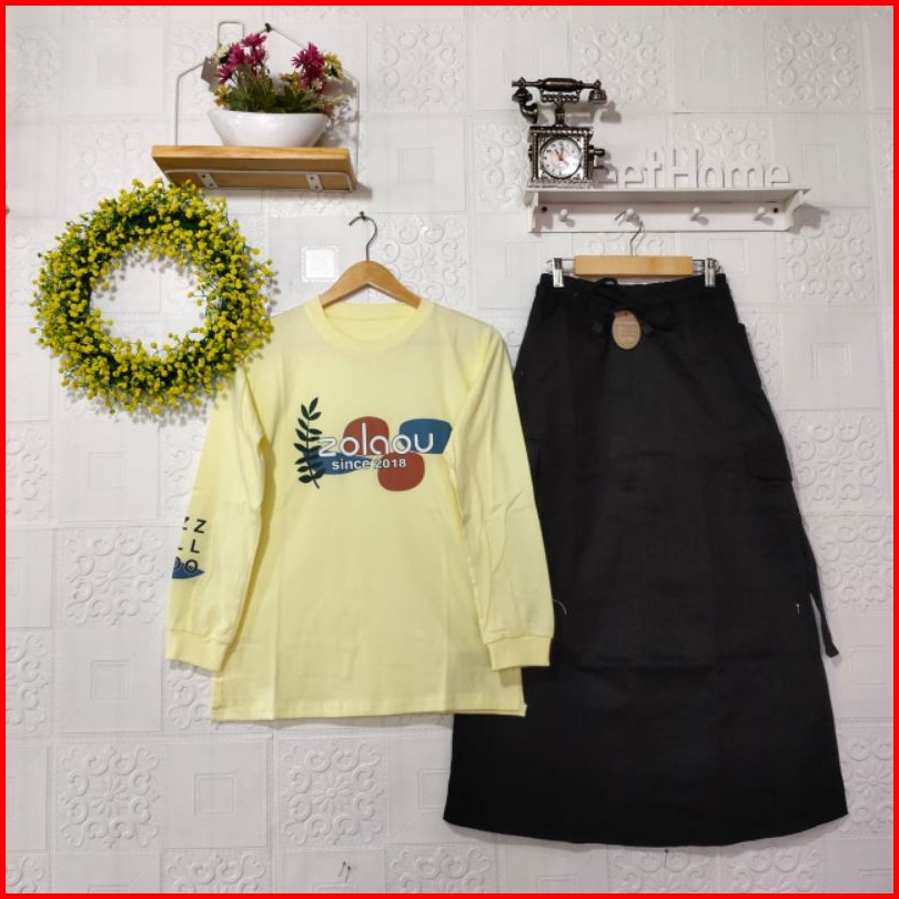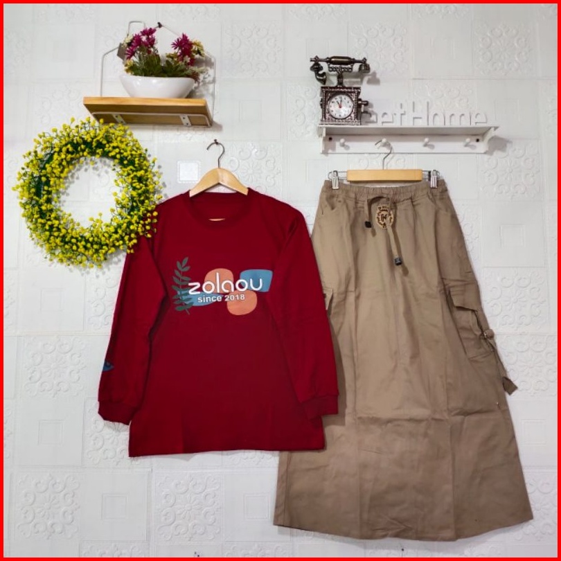 Setelan 2in1 Rok Chinos Atasan Setrok Dan Kaos Wanita Terbaru