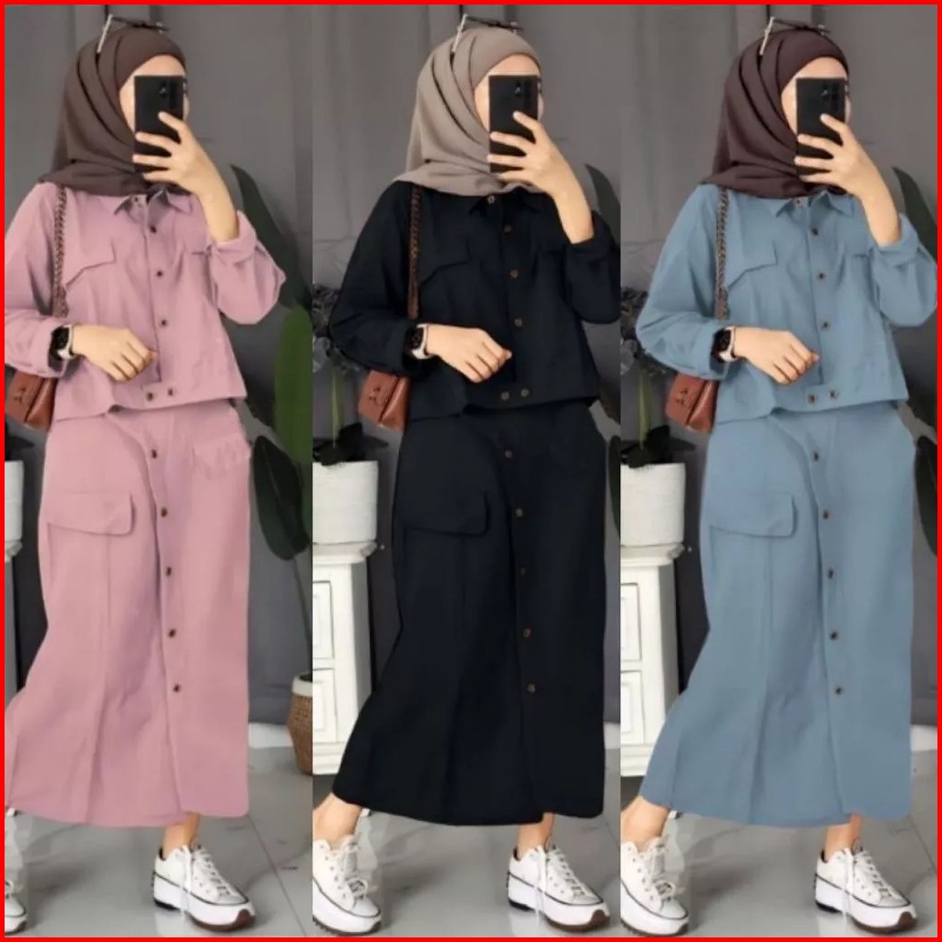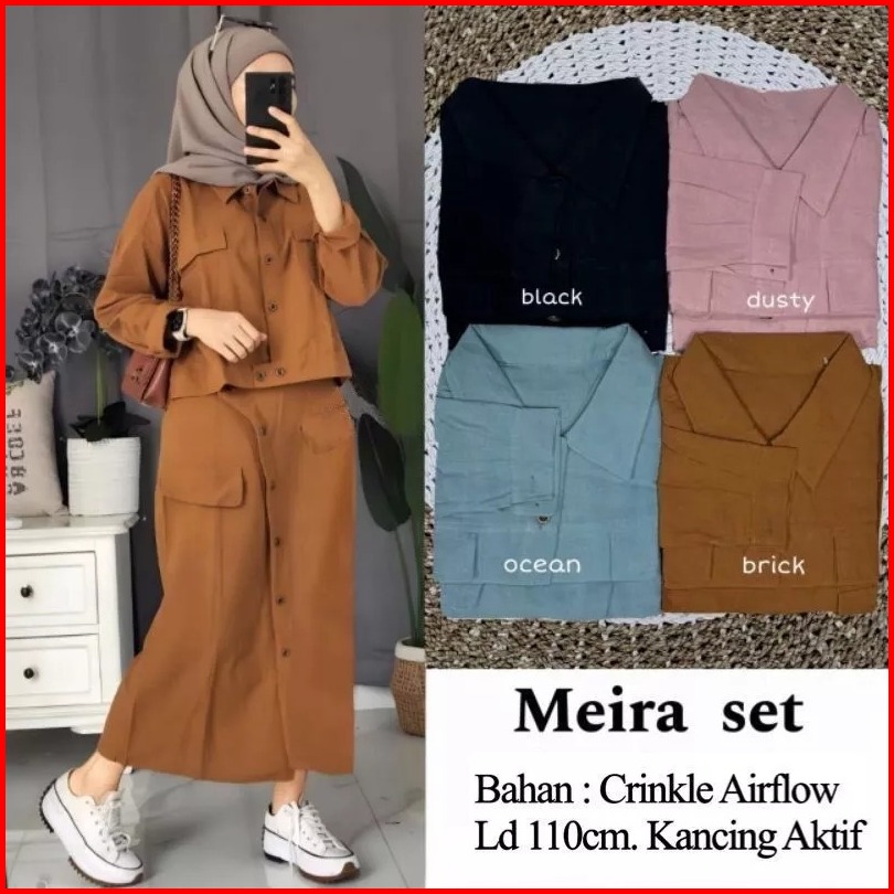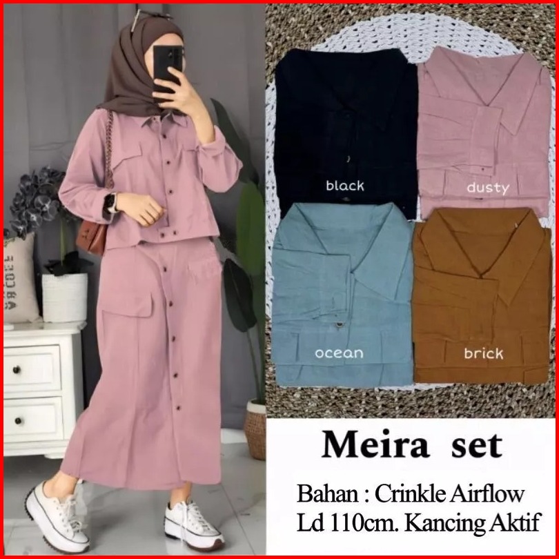 New Meira Set Rok Cargo Crinkle Airflow Kancing Aktif Setelan Meira One Set Meira Set Rok Meira Setelan Muslimah Rok Kek