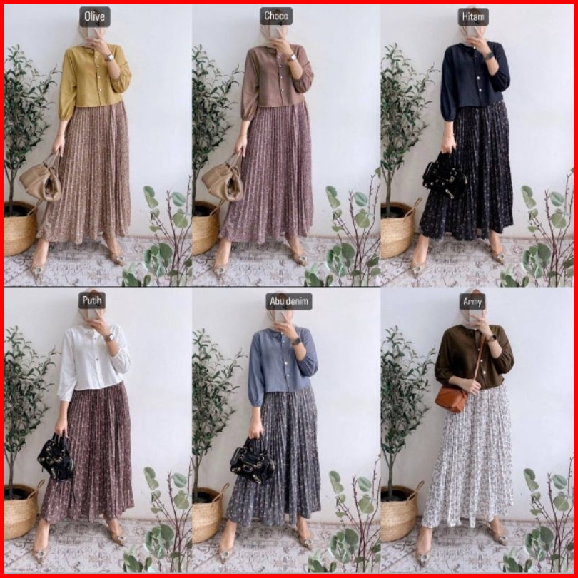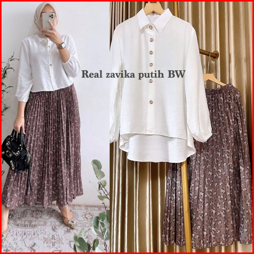 Zavika Set Rok New Premium Viral Setelan Rok Plisket Terlaris Kekinian Setelan Rok Wanita Jumbo Polo Linen6