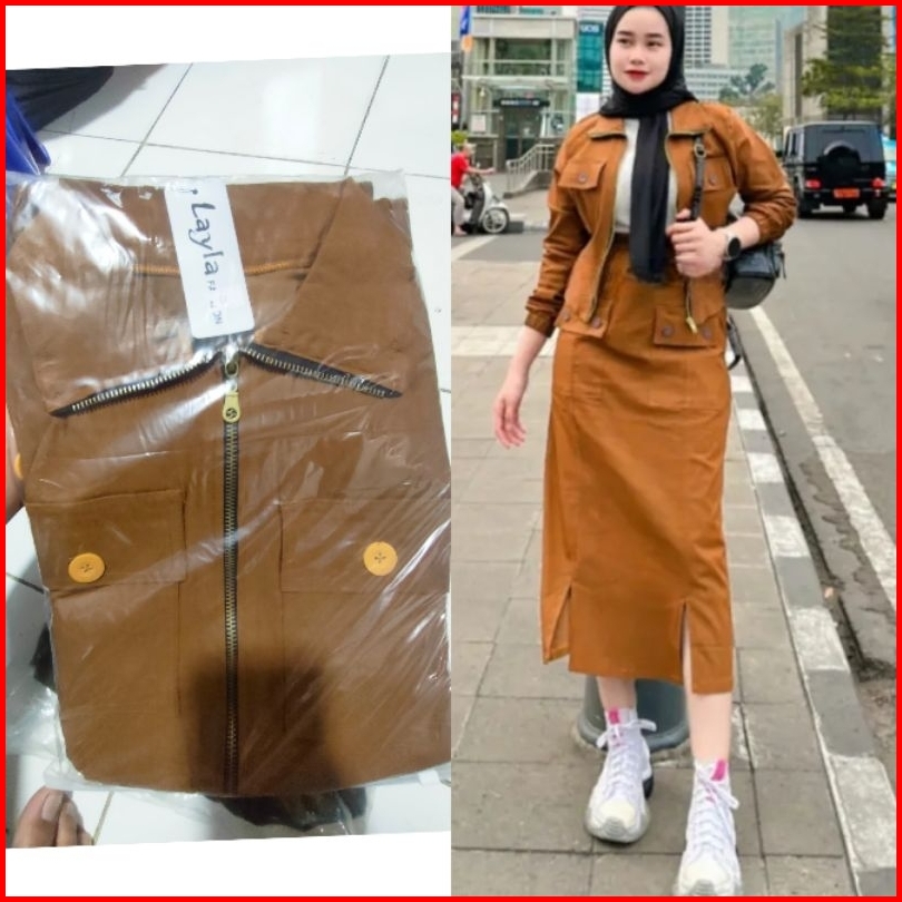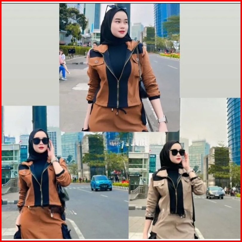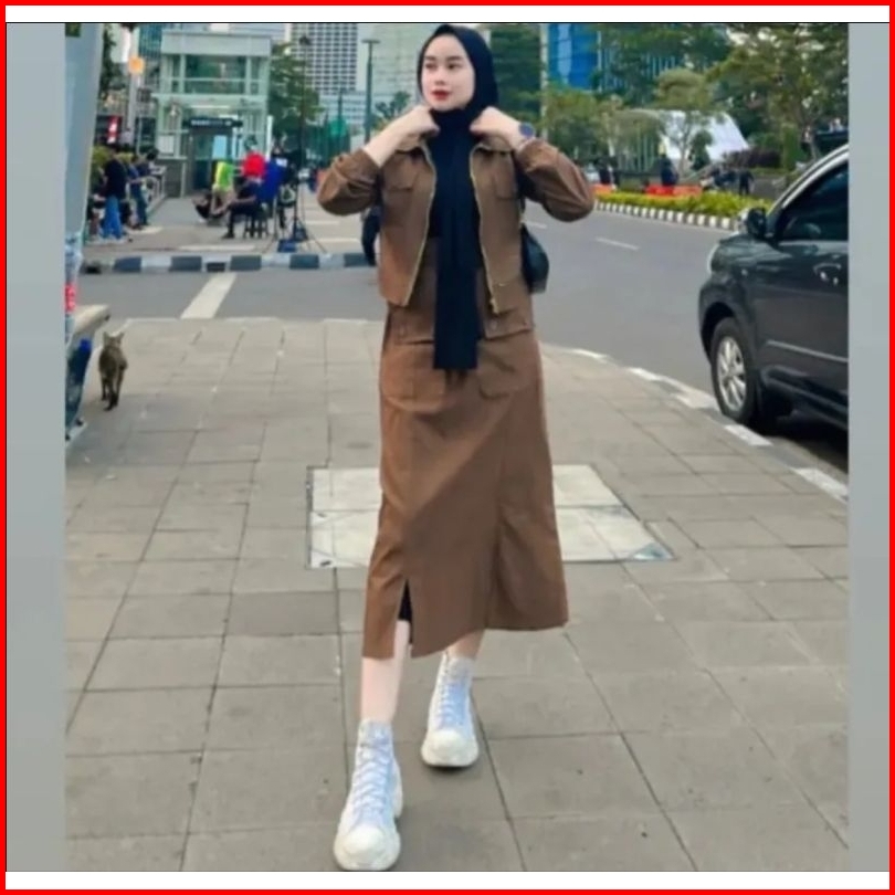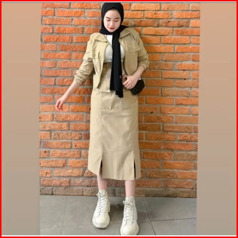 Setelan Bomber Cargo Sonia Fashion Style Kantong Rok Model Belah