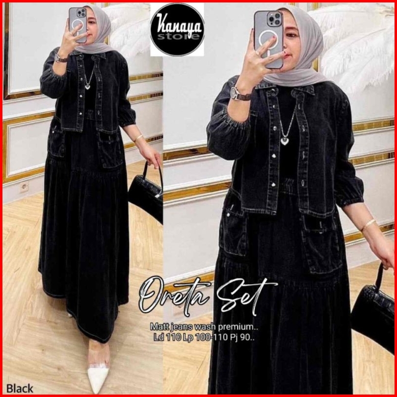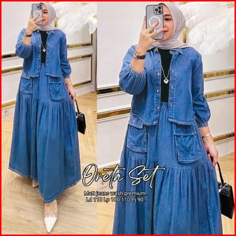 Setelan Wanita Jeans Rok Oreta Set Jeans Wash Premium Pakaian Wanita Kekinian Saku Depan Busui Outer