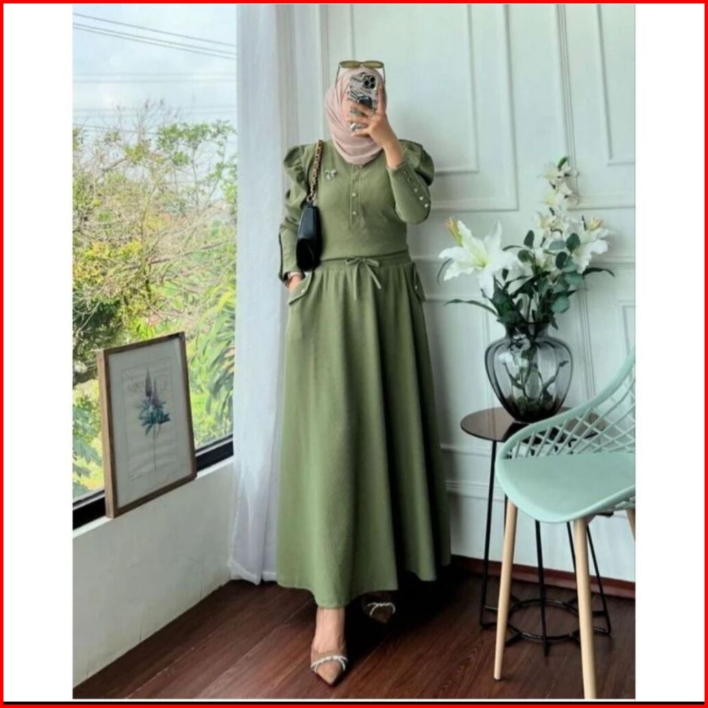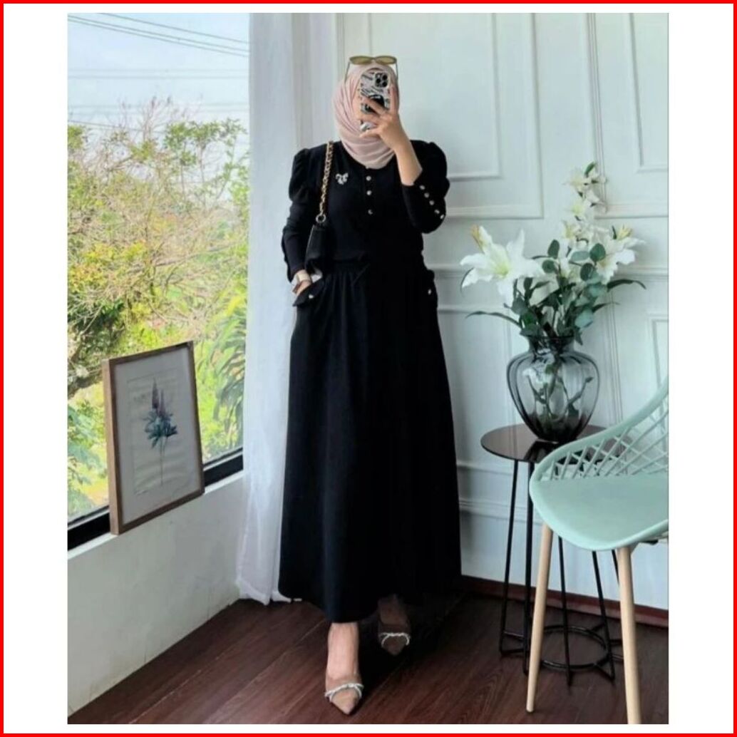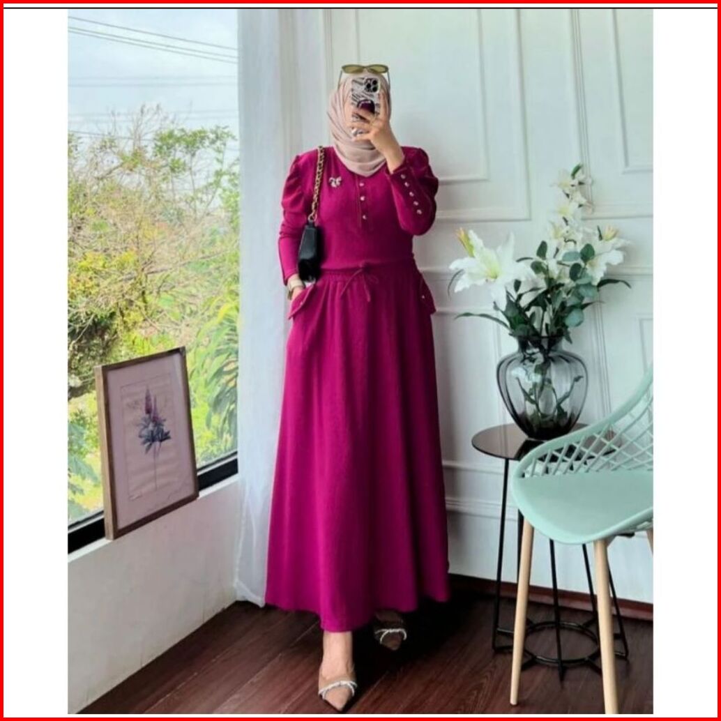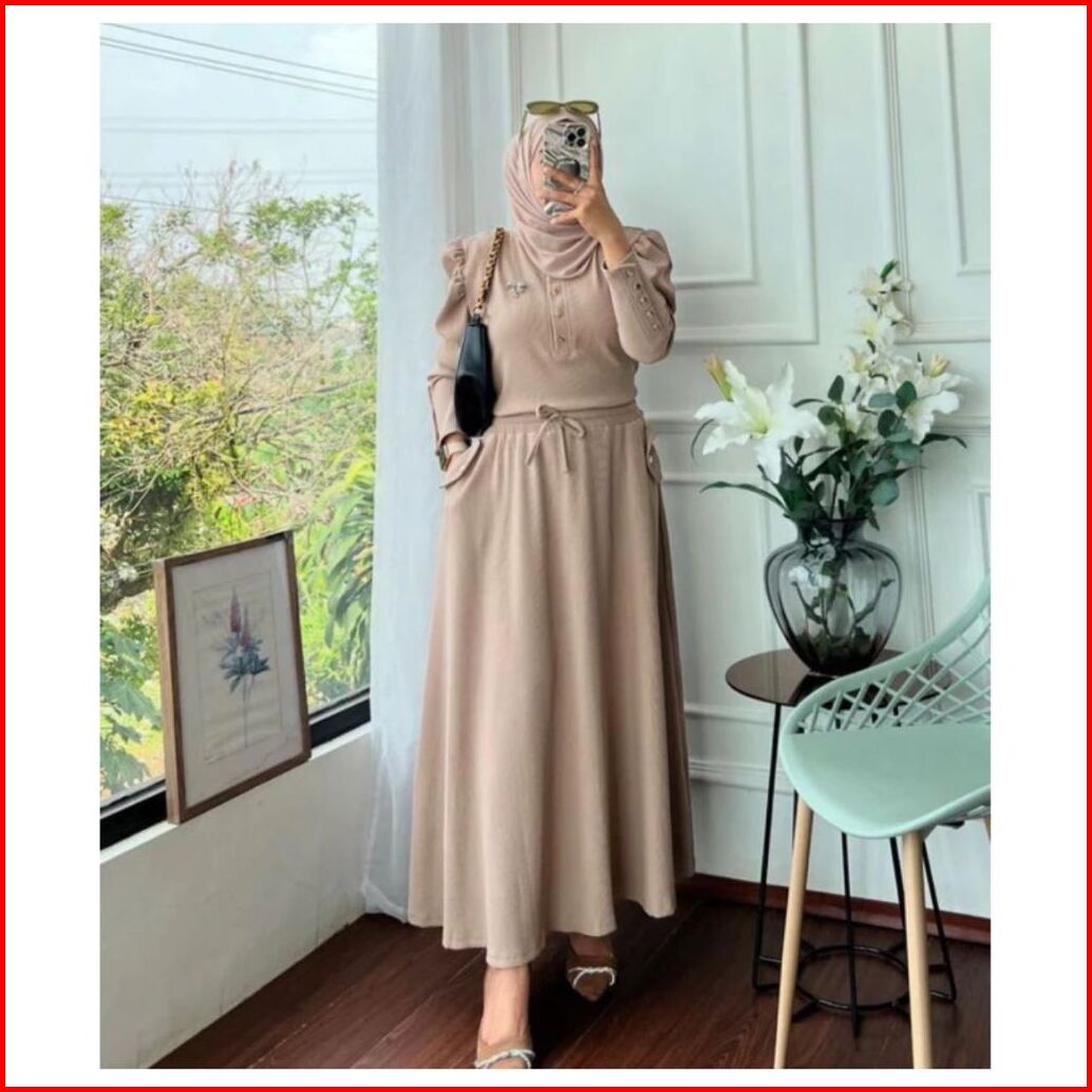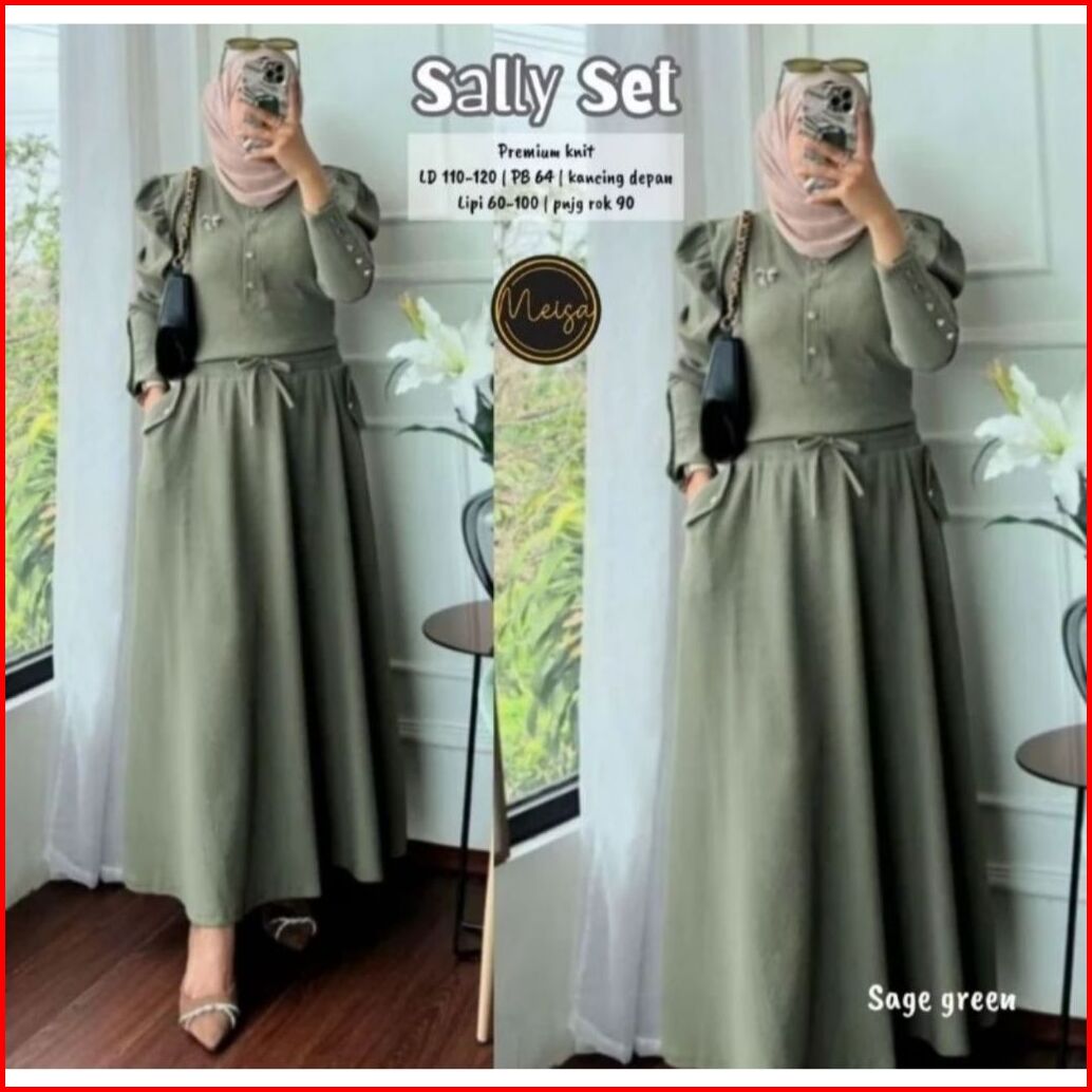 Sally Setelan Rok Tangan Balon Knit Premium Setelan Rok Wanita Rib Knit Setrok Wanita Lengan Balon Setelan Wanita Polos