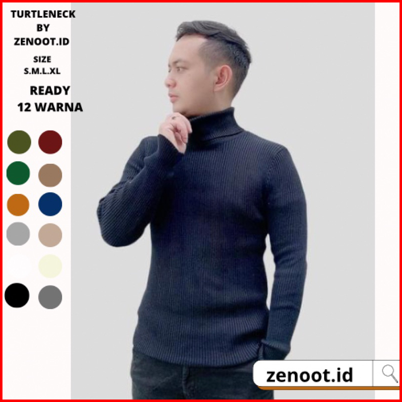 Sweater Rajut Turtle Neck Pria Kerah Tinggi Turtleneck Lengan Panjang Cowo