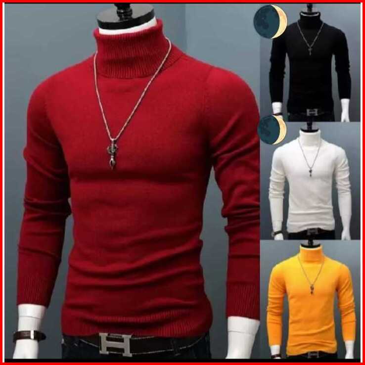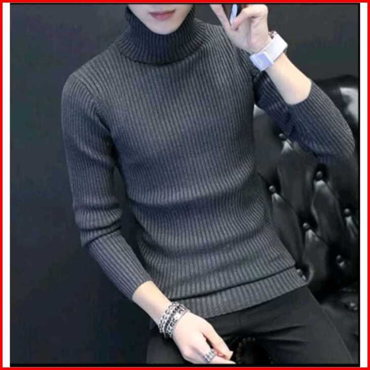 Sweater Turtle Neck Kerah Tinggi Pria Dewasa Lengan Panjang Bahan Rajut Rib Premium Terbaru