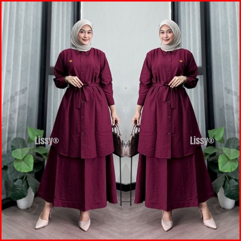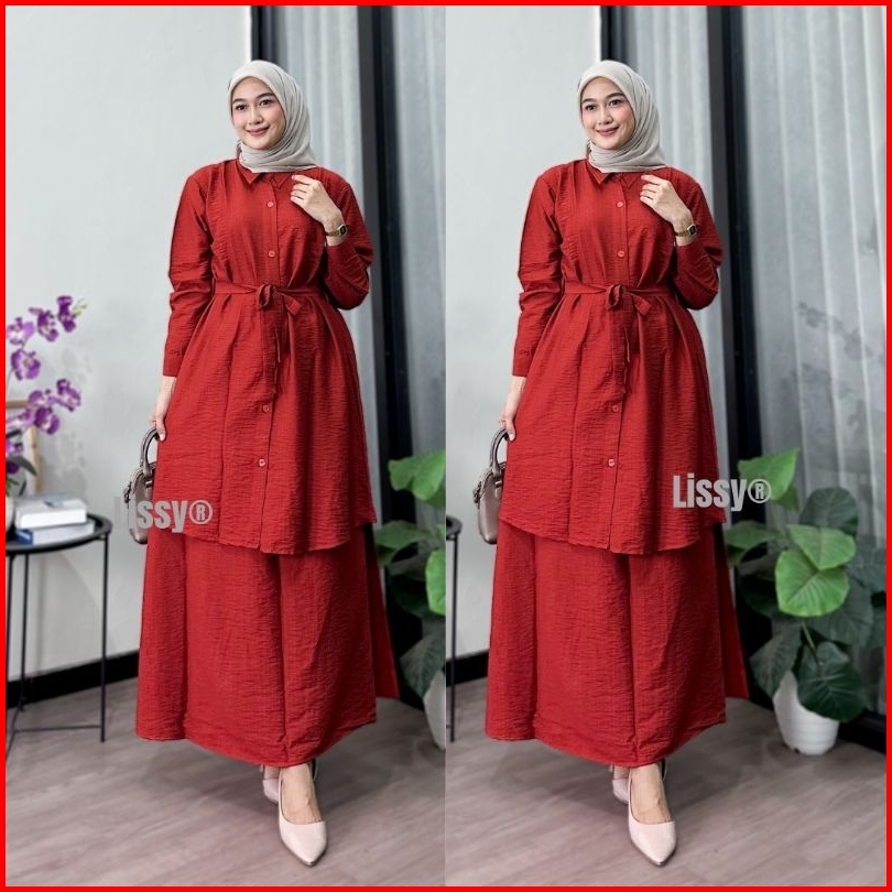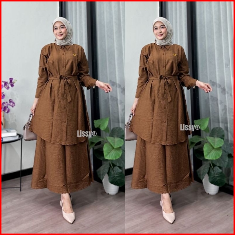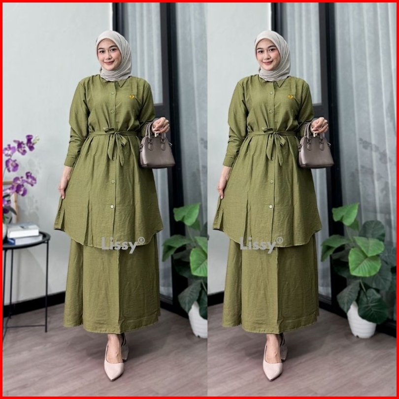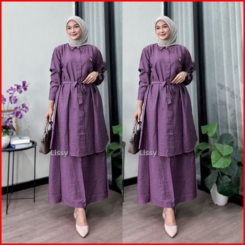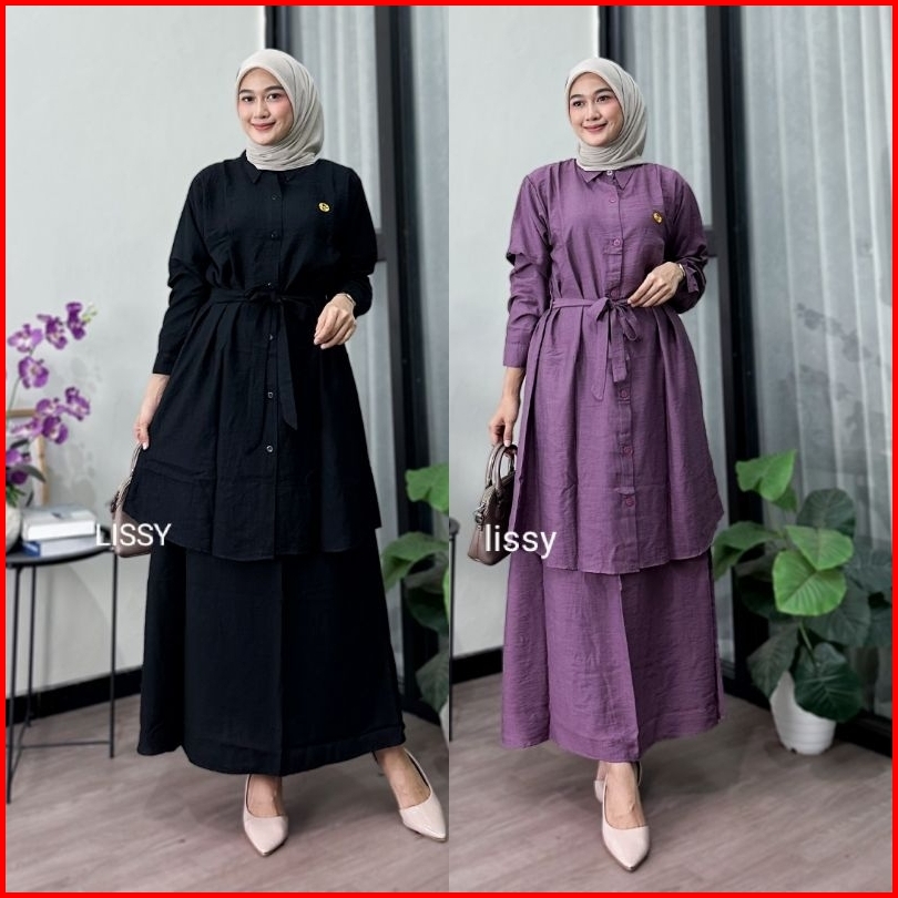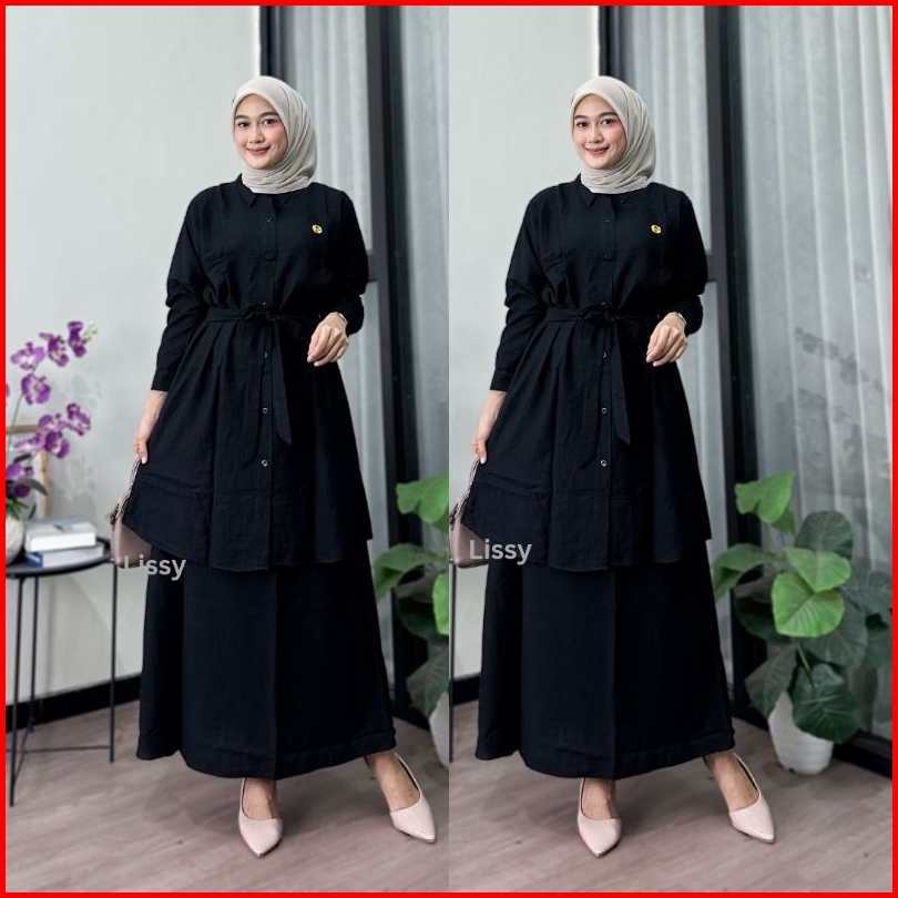 Lissy Hania Oneset Rok Setelan Super Premium Mix Tali Belt Atasan Linen Premium Kekinian Terbaru