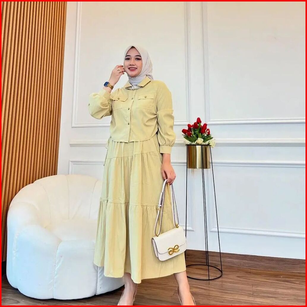 Erinafashion Belaria Set Rok Setelan Wanita Terbaru 2024 Bahan Crinkle Airflow One Set Kekinian
