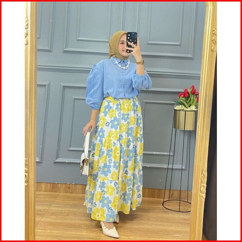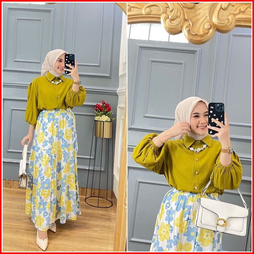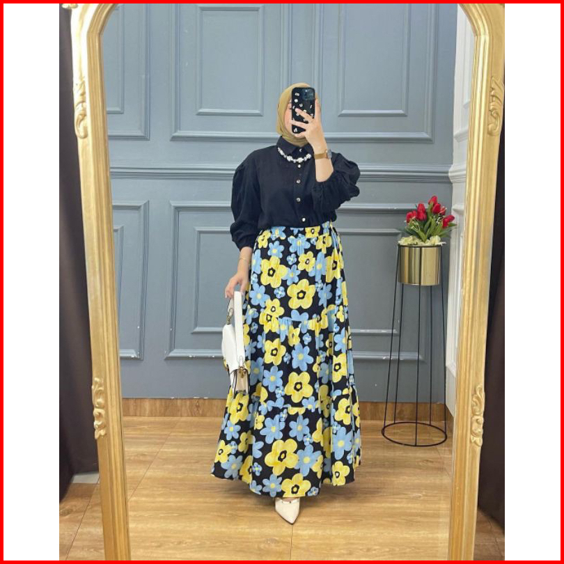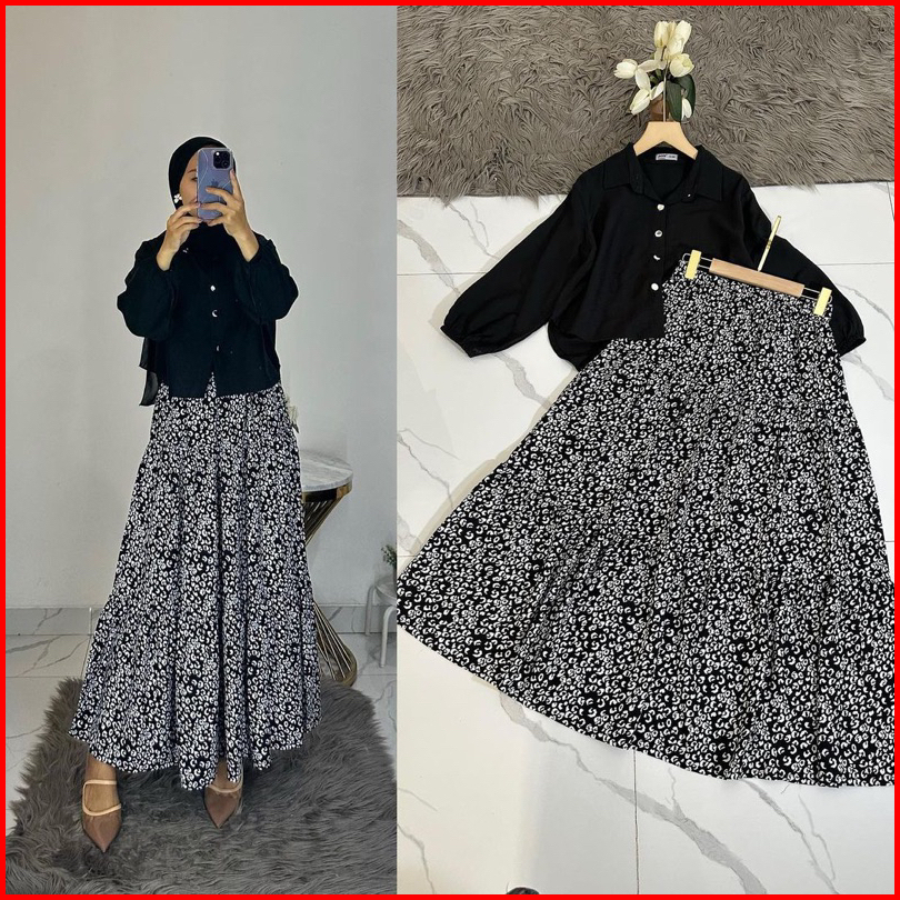 Naura Set Rok Terlaris Rayon Mix Crinkle Ld 110 Setelan Rok Kekinian One Set Rok Wanita Dewasa Secel Rok Polos Kombinasi