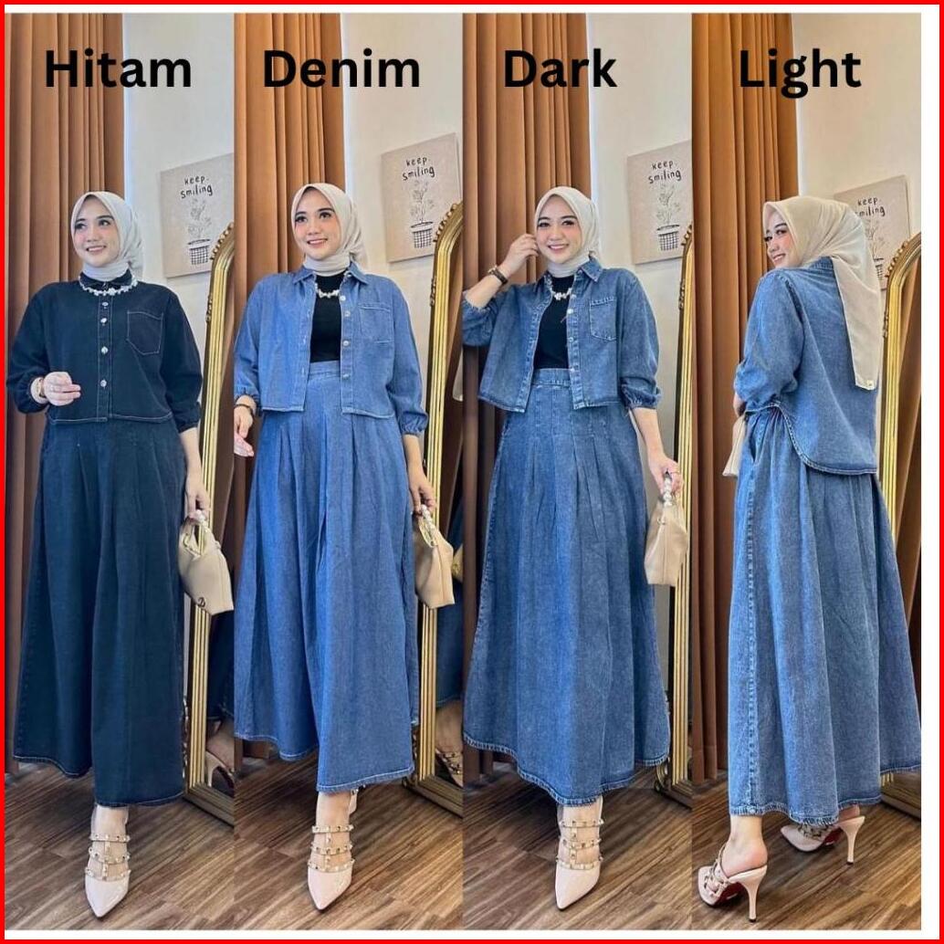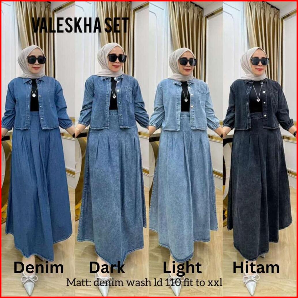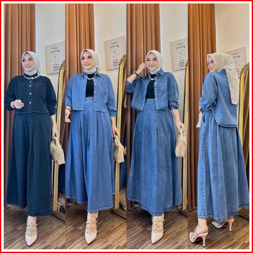 Valeska Set Atasan Rok Panjang Bahan Jeans Denim Premium