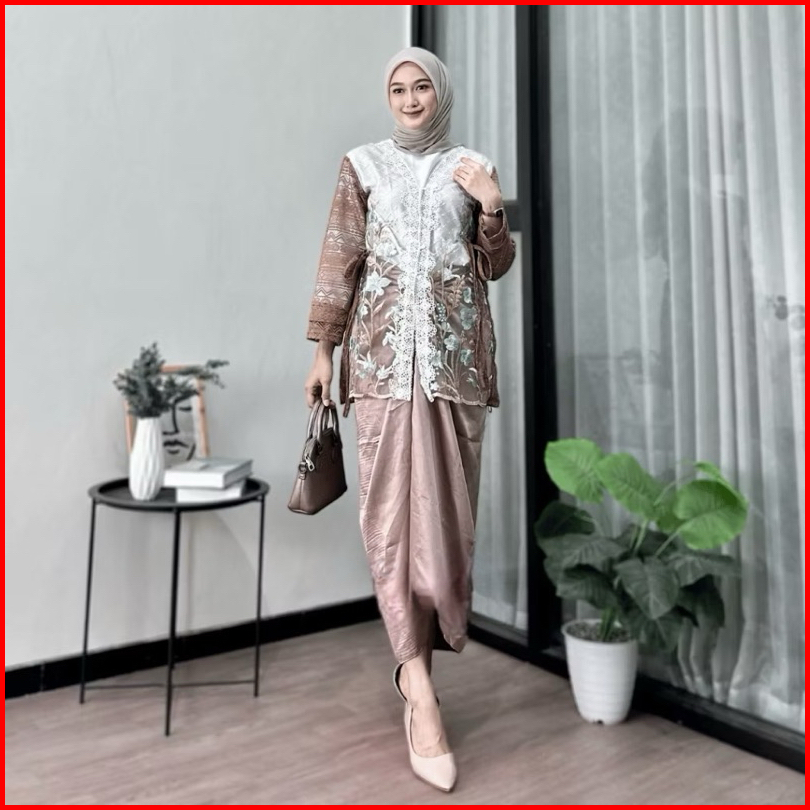 Devarina One Set Wanita Kekinian Oneset Kalandra Tulle Gardenia Warna Mix Renda Full Chantily Halus Setelan Inner Outer