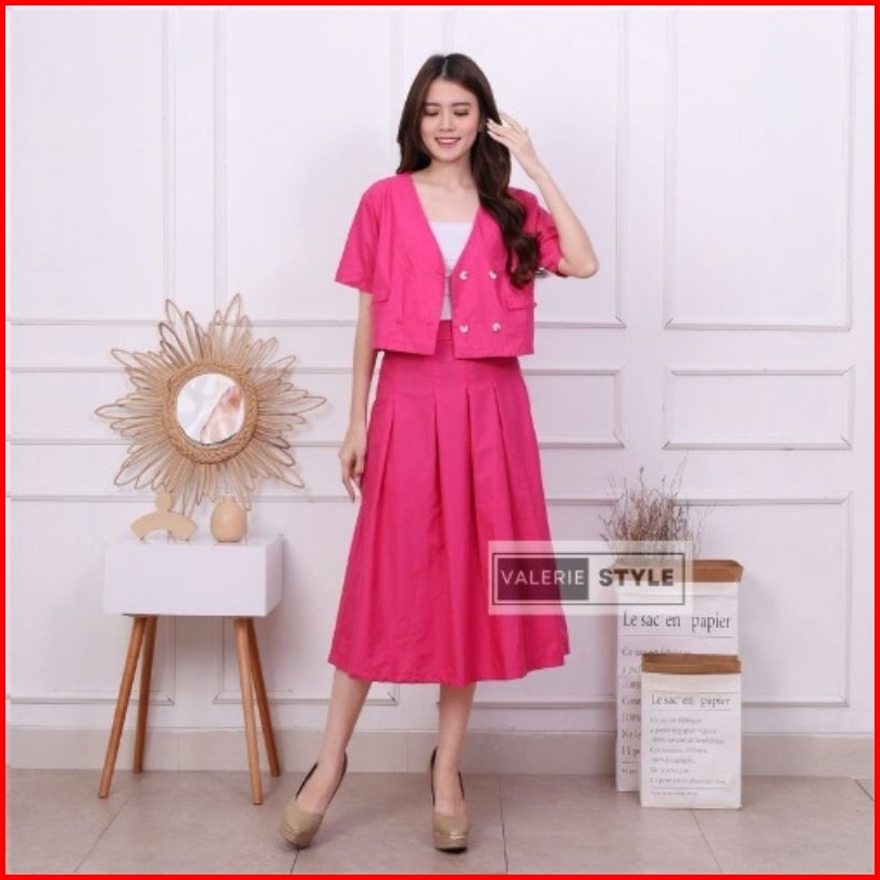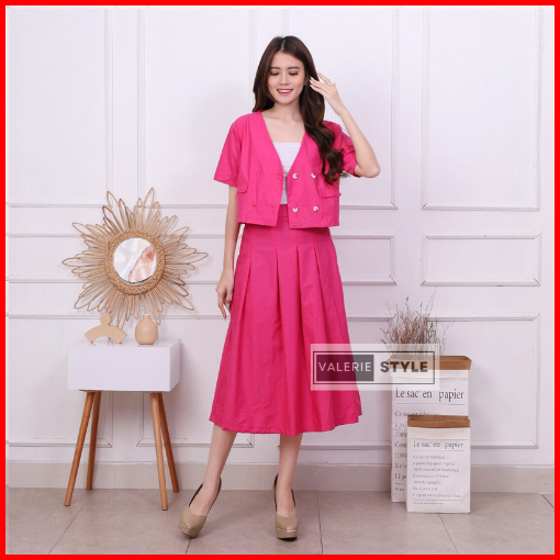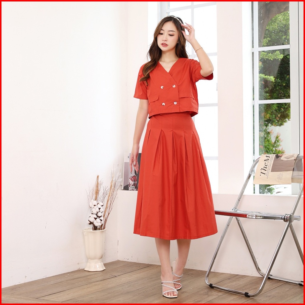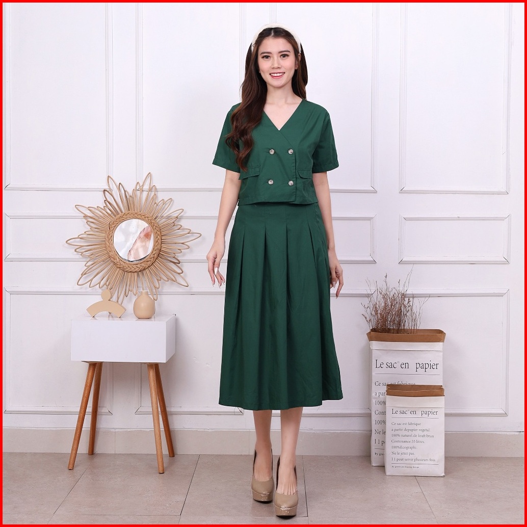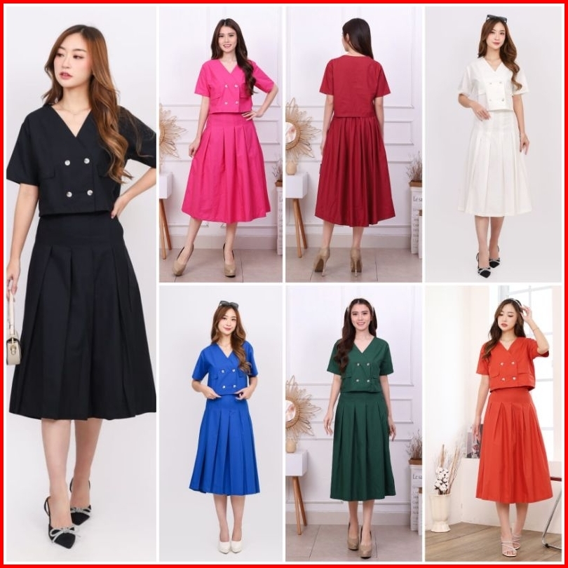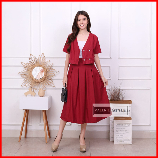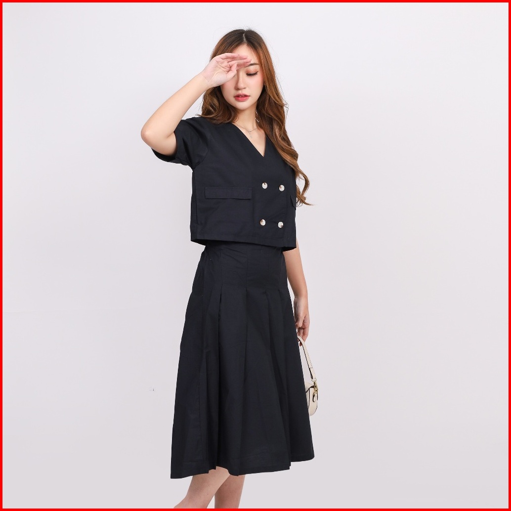 Qiyana Set - Set Wanita Rok Atasan Crop Rok A Line Flare Panjang Skirt Set