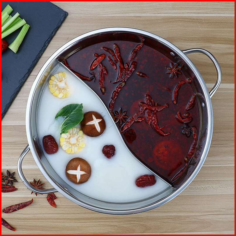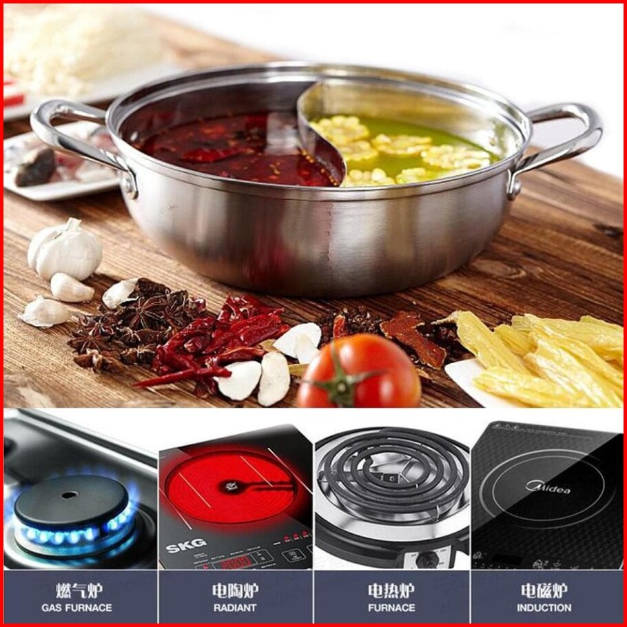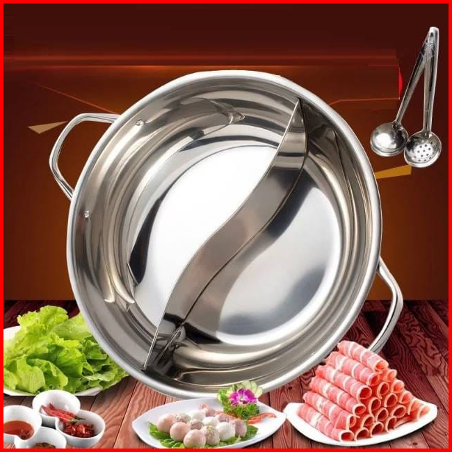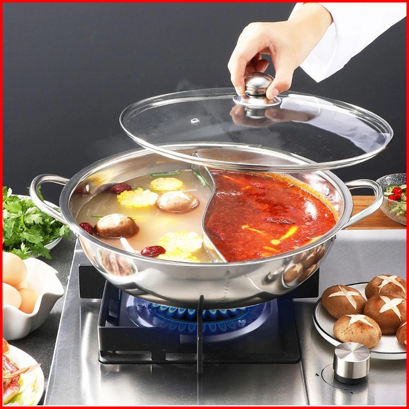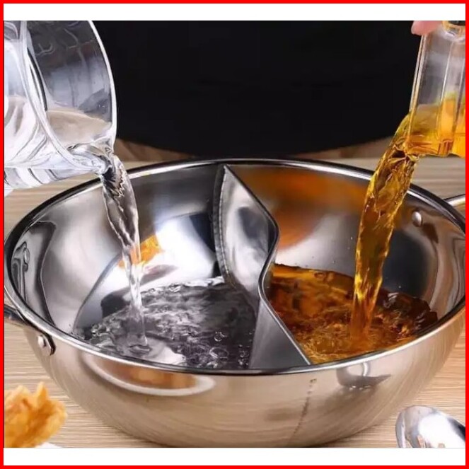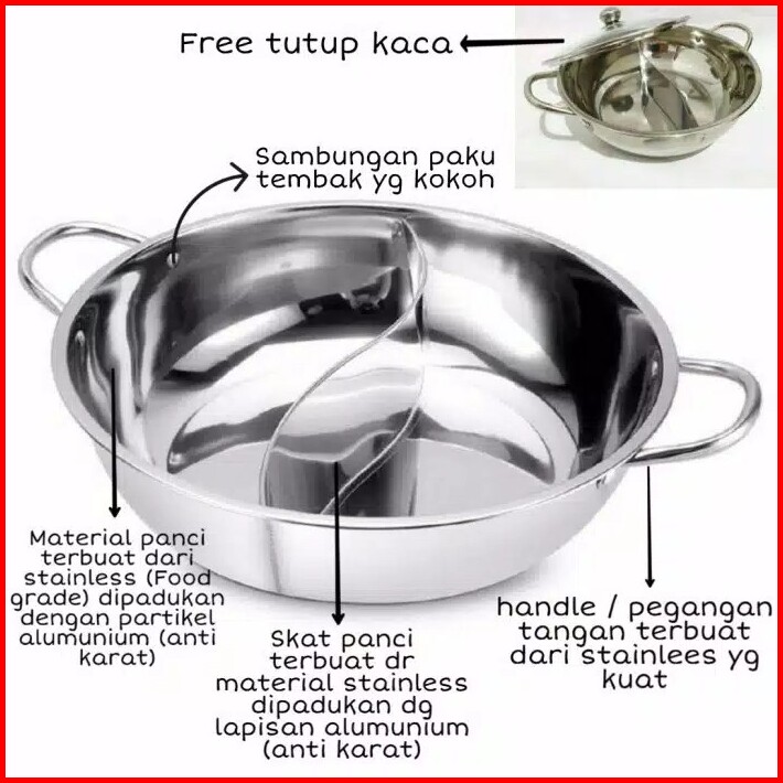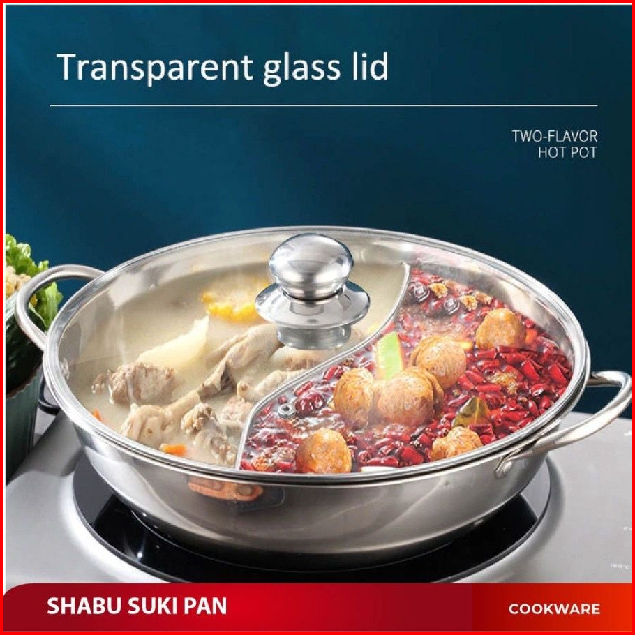 Panci Shabu 28 30 Cm Tutup Kaca Panci Sekat Hotpot Steamboat Stainless
