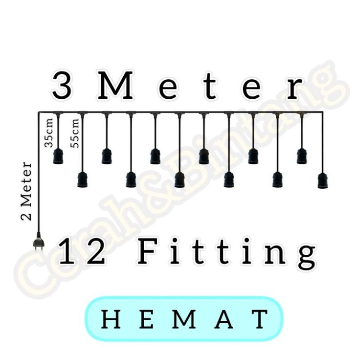 Promo KABEL FITTING GANTUNG DEKORASI 3 METER 12 JUNTAI PELAMINAN BACKDROP CAFFE