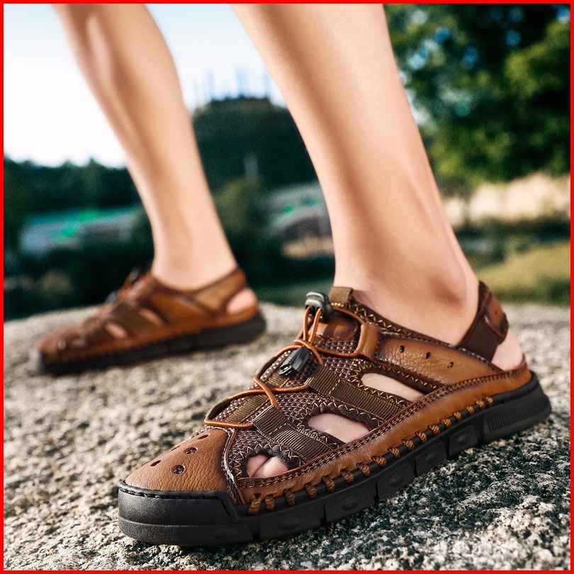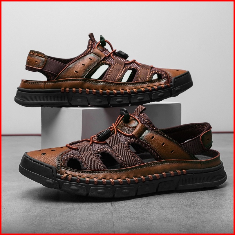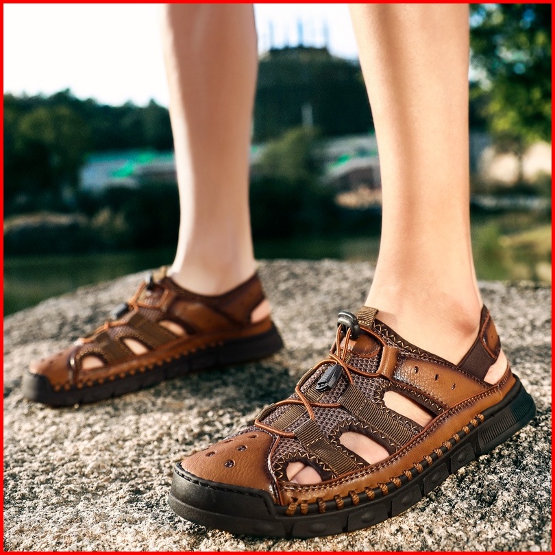 Sandal Gunung Mtb Sendal Pria Gunung Hiking Mendaki Kulit Asli Outdoor Handmade Olahraga 046