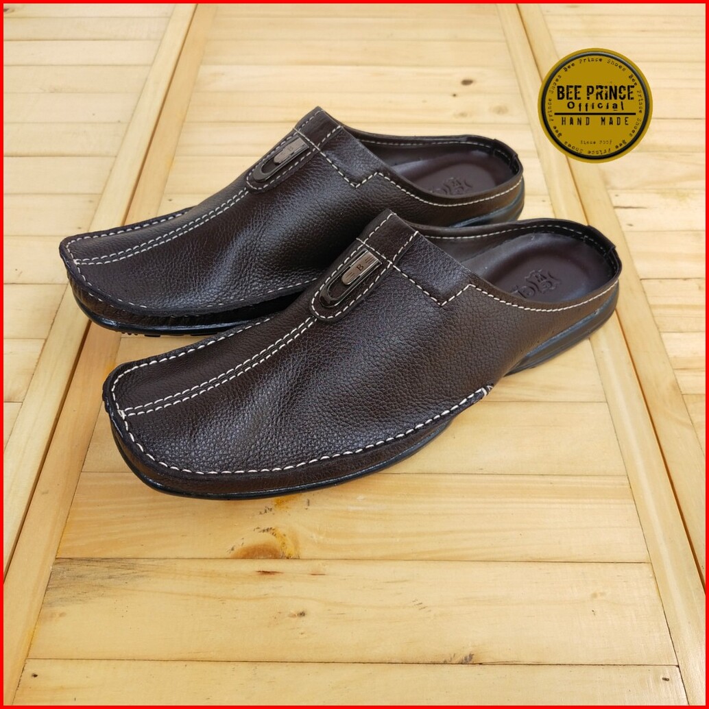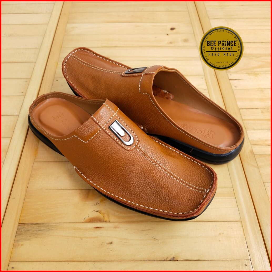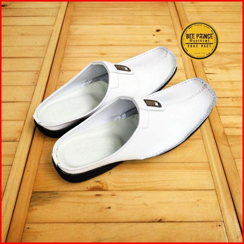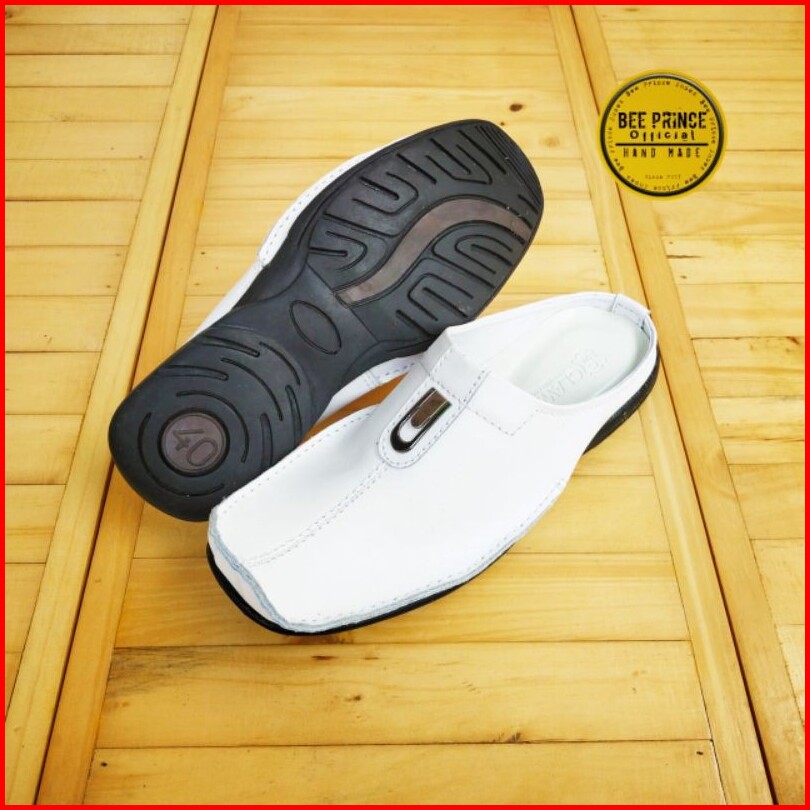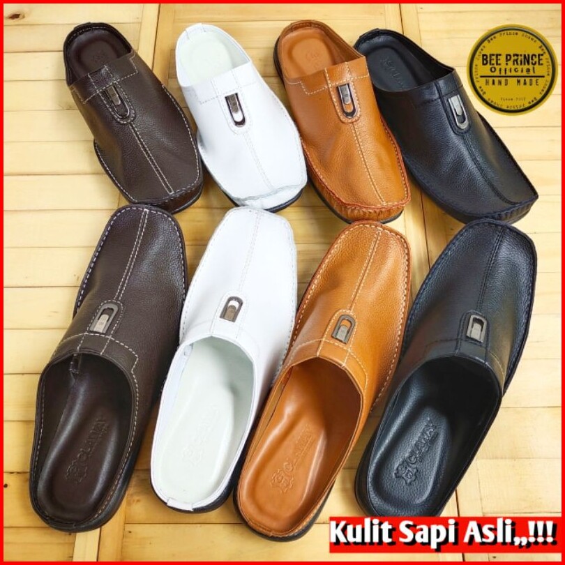 Bee Prince Sandal Sepatu Pria Selop Laki Laki Bustong Cowok Pansus Putih Tutong Daltu Kulit Asli