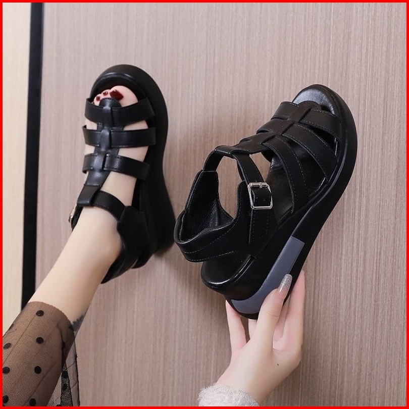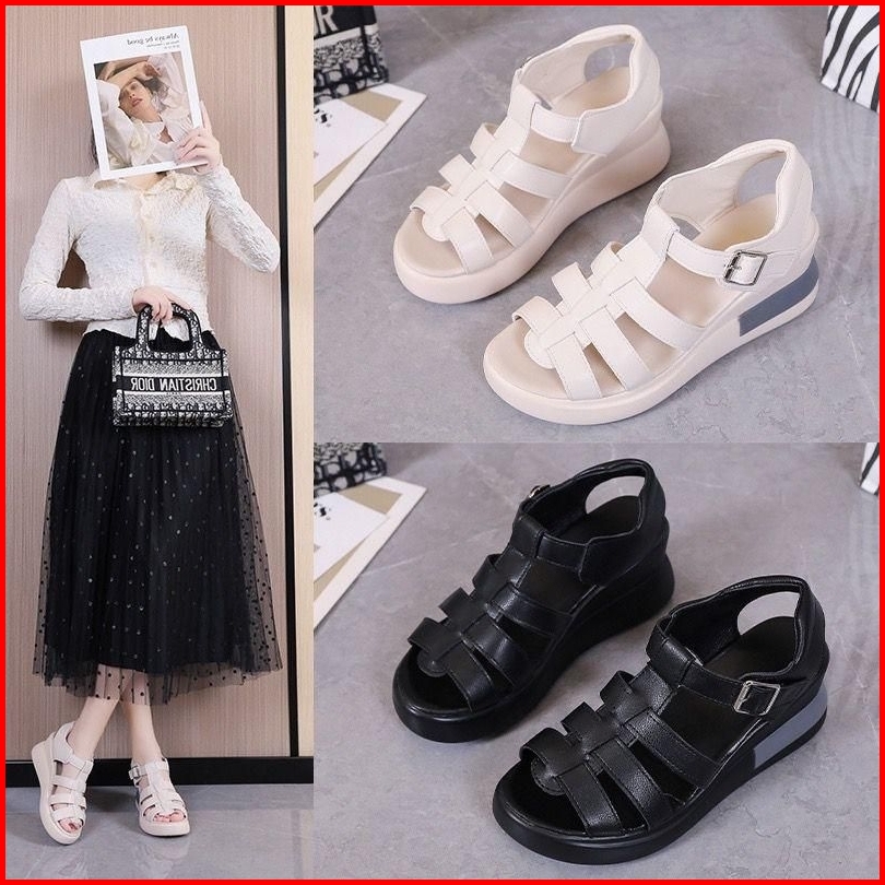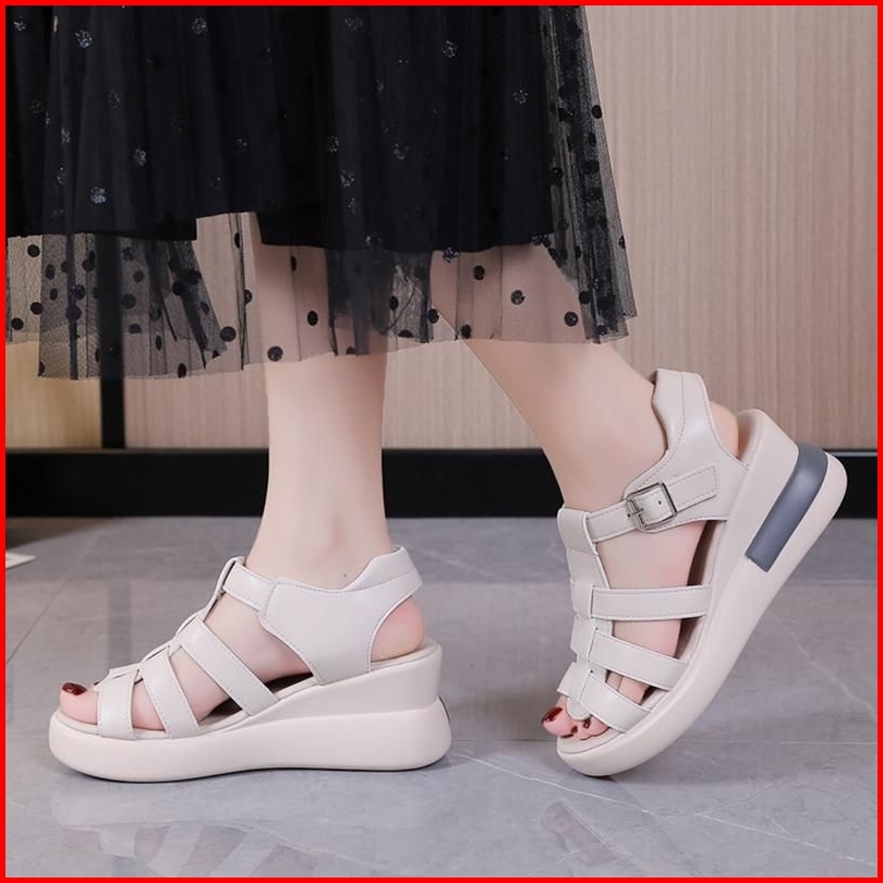 Rezvit - Sandal Import Wedges Wanita Terbaru Sendal Tali 3 Trend Kekinian Sandal Platfoam Cewek Hak Tinggi Korean Style