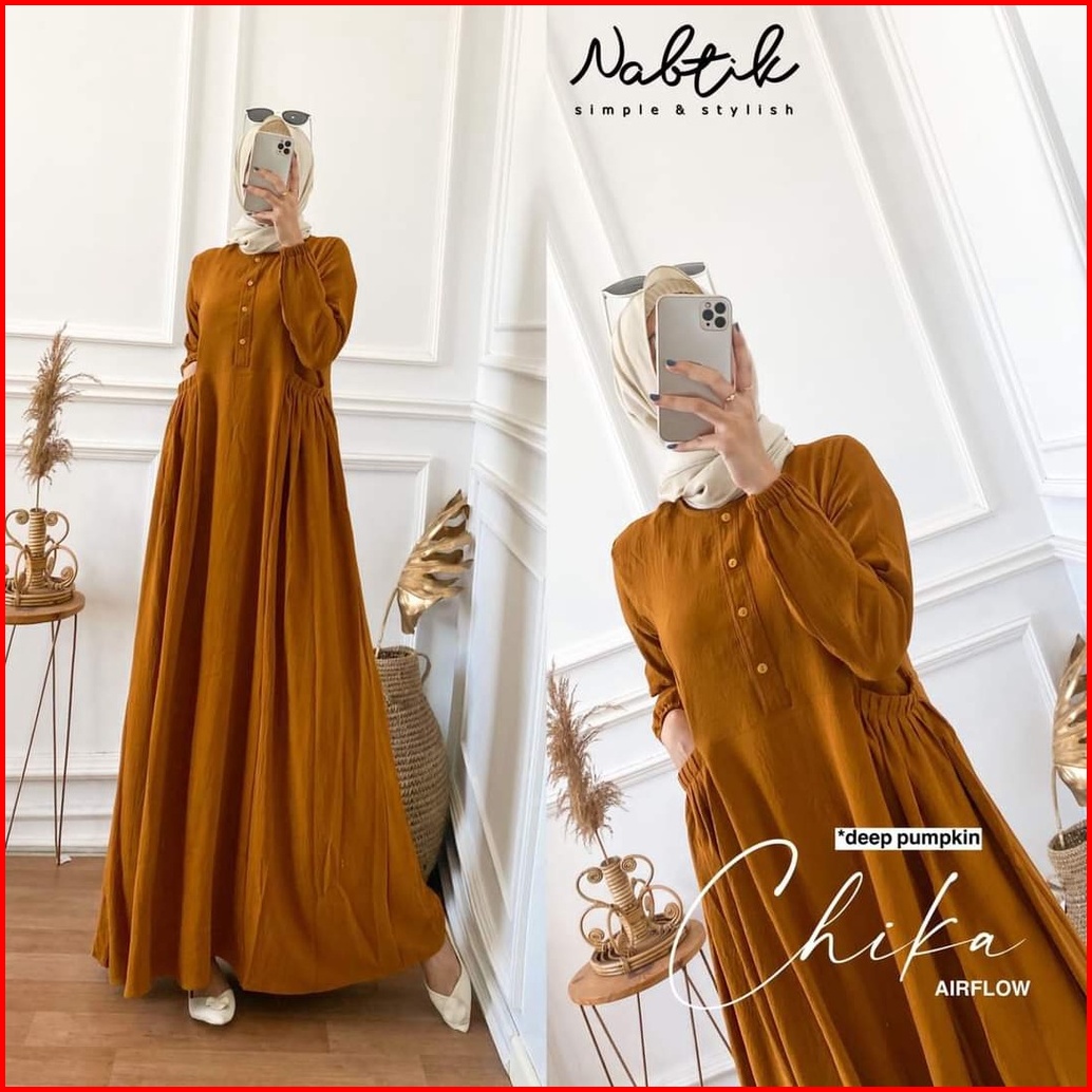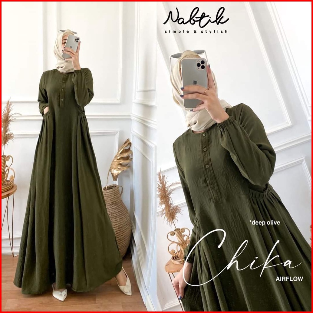Gamis Cika Polos Putih Bahan Crincle Premium Ada Saku Samping Simpel Imut Elegan Busui Kancing