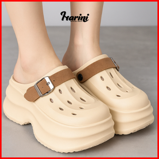 Sandal Baim Klasik Polos Sendal Wedges Kodok Karet Jelly Wanita Elegan Import Balance Eva E821