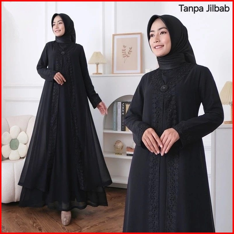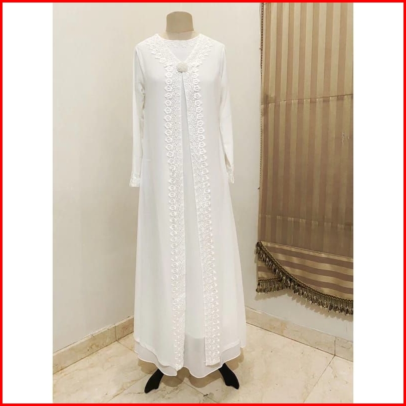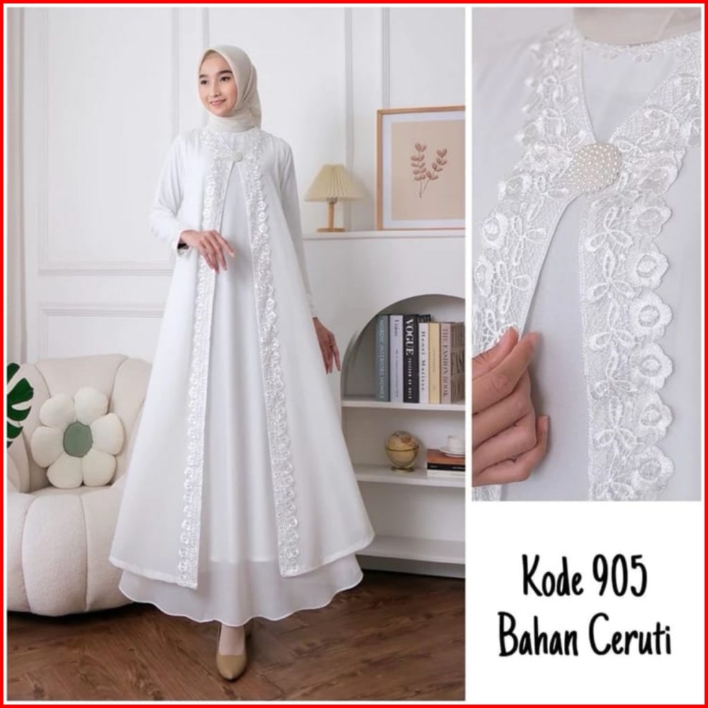 Baju Muslim Putih Hitam Wanita Ceruti Busana Muslim Umroh Haji Baju Gamis Putih Tulang Hitam Gamis Ceruti Wanita Lebaran