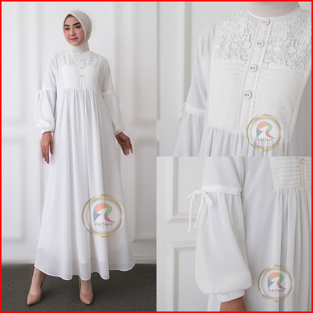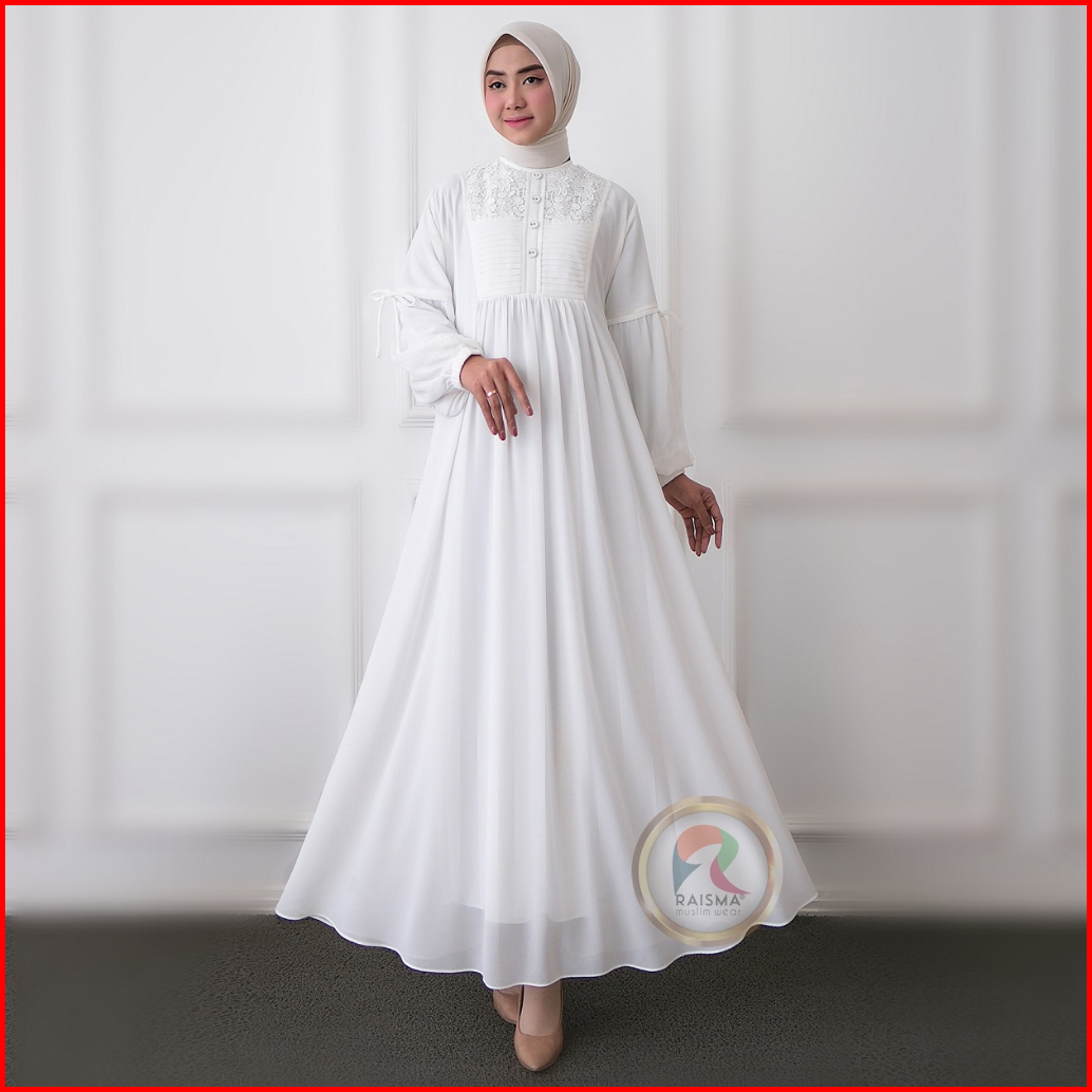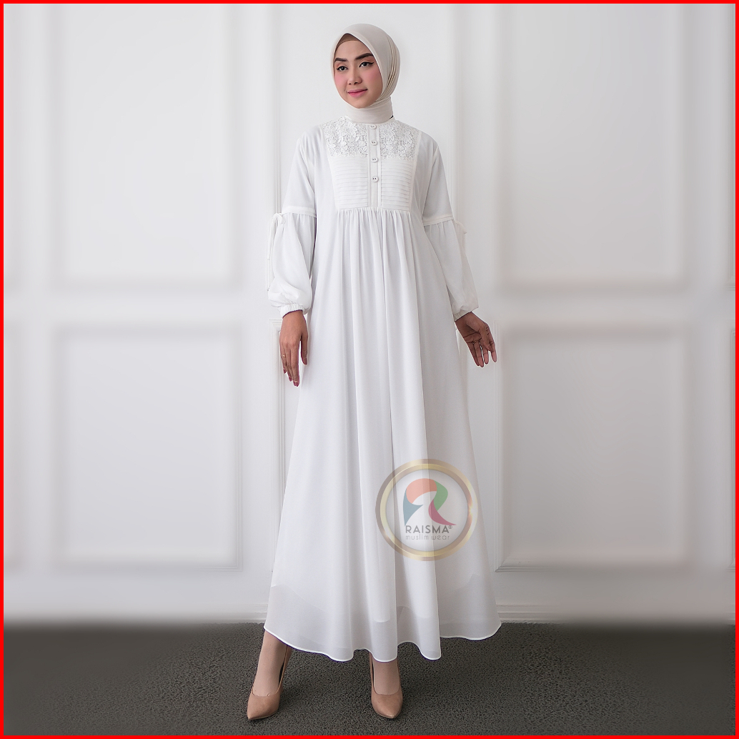 Raisma - Niarnies Dress Muslimah Warna Polos Gamis Putih Hitam
