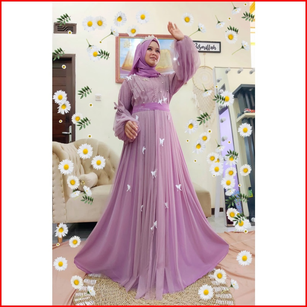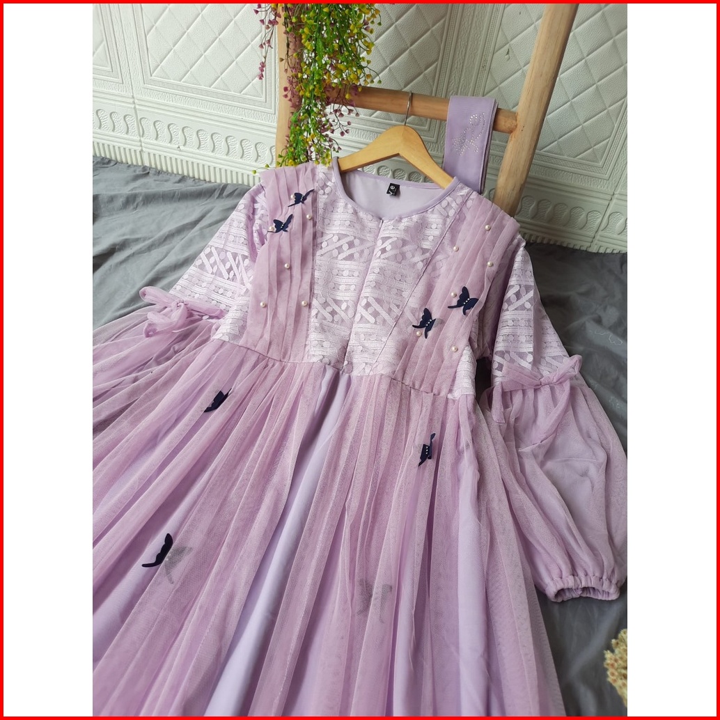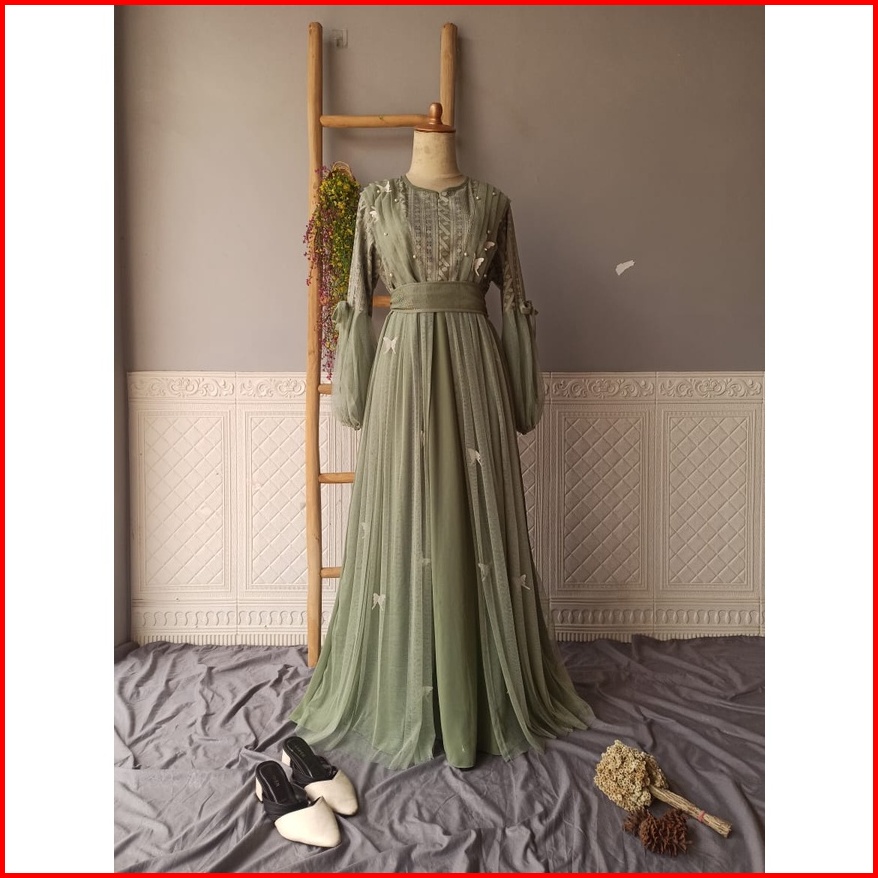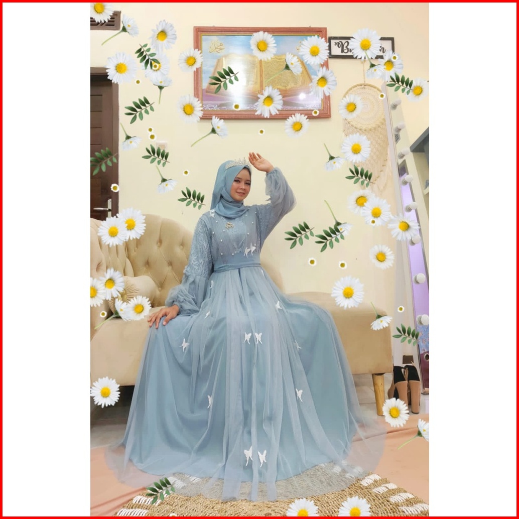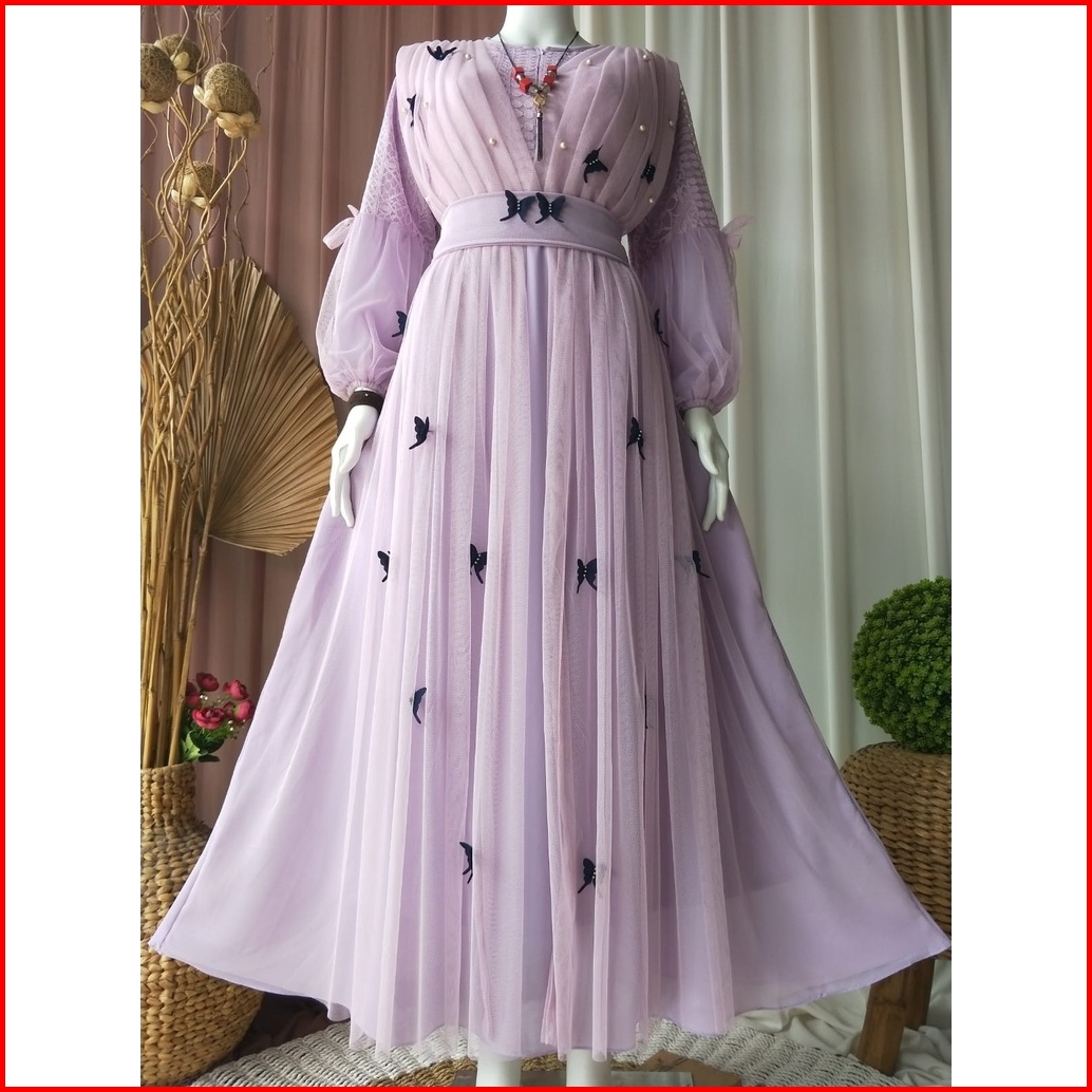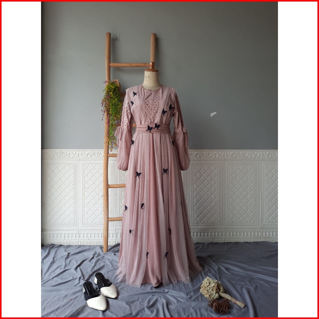 Gamis Gaun Pesta Tania Dress Exslusive Cerutty Mix Tille Full Furing Ld.110 Pb.140 Gamis Kondangan Bridesmaid Gamis Enga