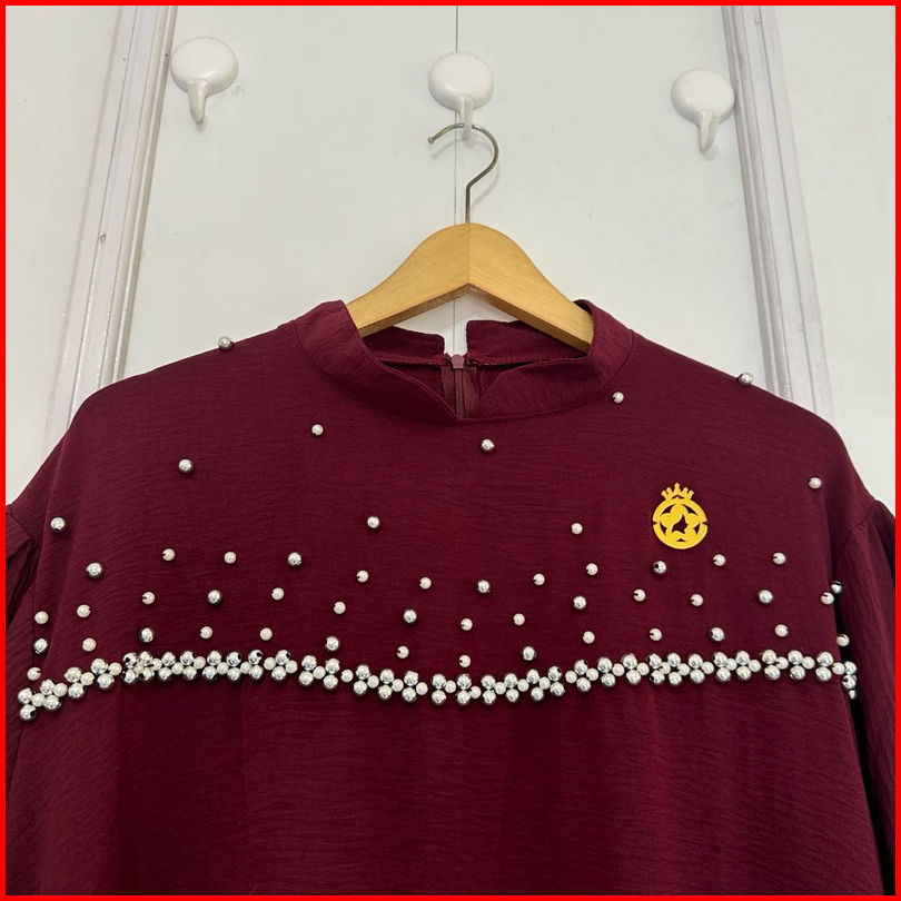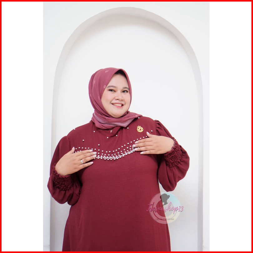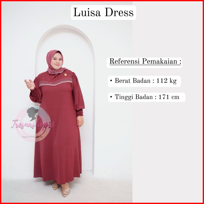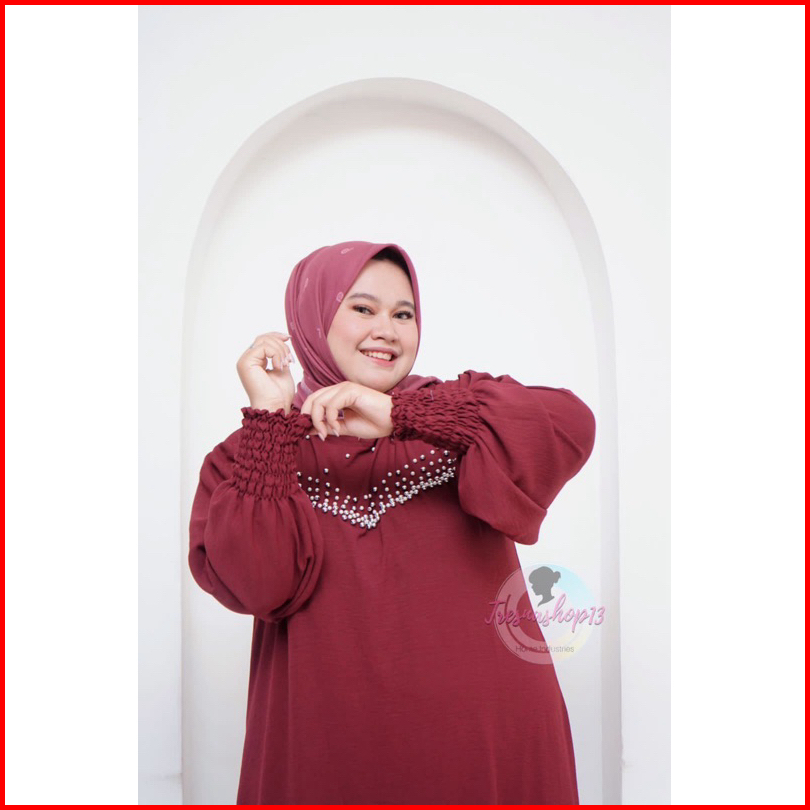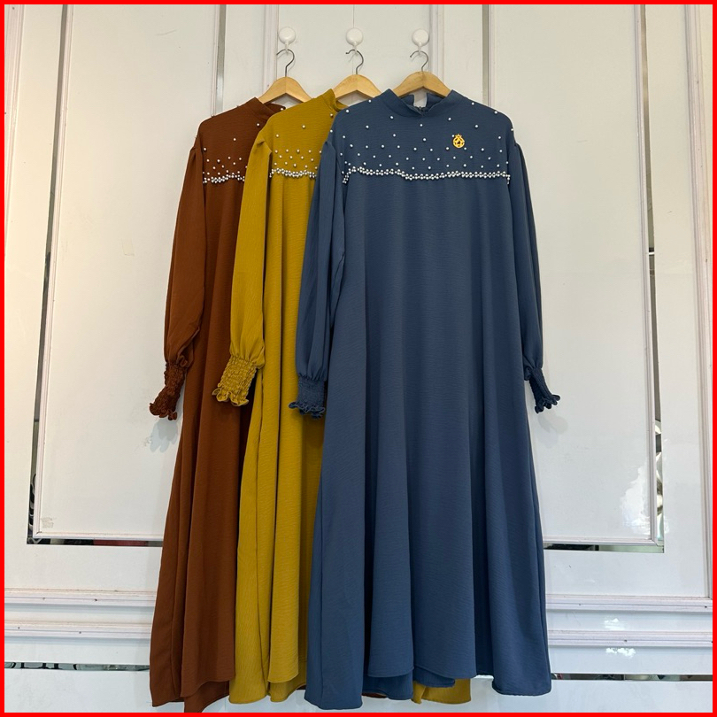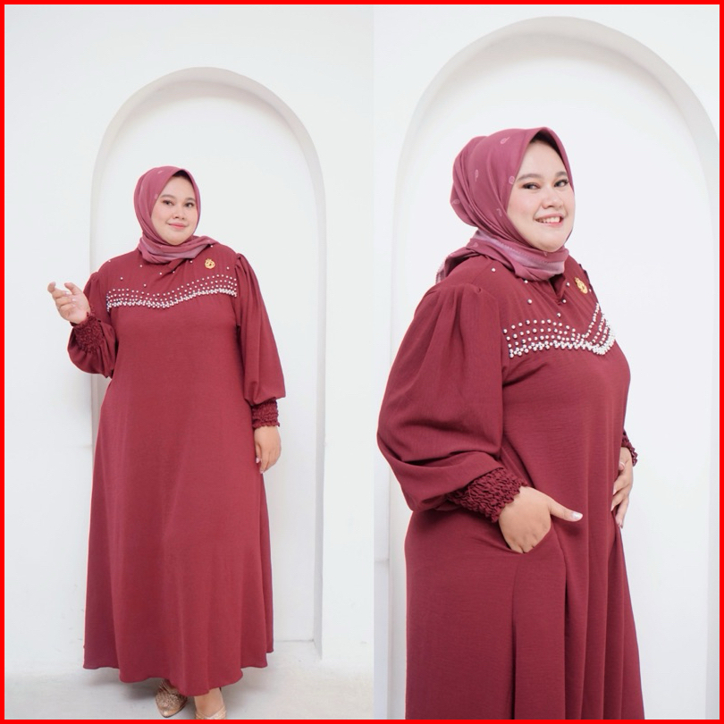 Luisa Dress - Gamis Wanita Jumbo Ld 130 Cm Variasi Payet Mutiara Bahan Crinkle Airflow Tebal